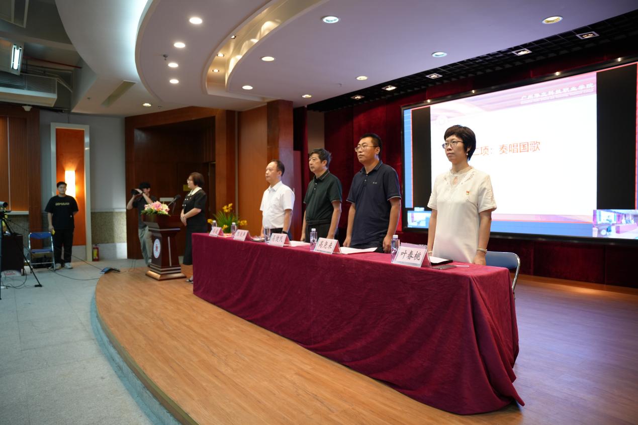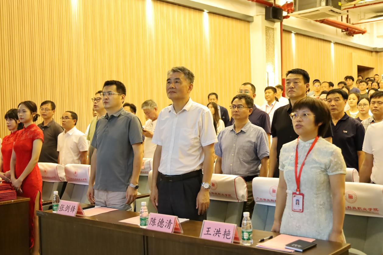 9月7日下午,在第39個教師節(jié)到來之際,廣州華立科技職業(yè)學(xué)院“躬耕教壇,強(qiáng)國有我”教師節(jié)表彰大會和2023年師德建設(shè)主題教育月活動啟動儀式采用兩校區(qū)視頻連線的方式,分別在廣州校區(qū)1號報告廳和云浮校區(qū)圖書館禮堂同步舉行。學(xué)校工會主席、常務(wù)副校長馬俊主持大會。
