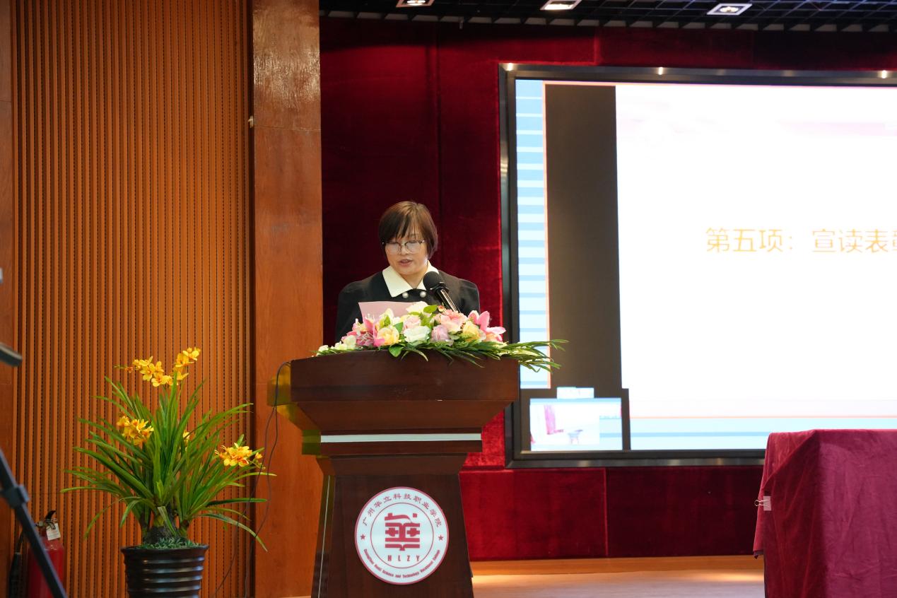 優(yōu)秀教育工作者代表李艷華老師在發(fā)言中感謝學(xué)校領(lǐng)導(dǎo)肯定和鼓勵;感謝兄弟部門的支持以及評建辦各位同事的精誠合作。她指出,我校2023年創(chuàng)強(qiáng)考核取得歷史性重大突破,高居同類院校排名第一!同時,在學(xué)校領(lǐng)導(dǎo)的高度重視和全體師生的共同努力下,學(xué)校成功獲批廣東省高校中華優(yōu)秀傳統(tǒng)文化傳承基地,打造了華立職院“文化傳承”的亮麗名片。總結(jié)點滴進(jìn)步和成績,李老師感慨:作為一名教育工作者,重要的是擁有一顆恭敬之心,即對黨的教育事業(yè)的恭敬,對自身崗位的恭敬,對每一項任務(wù)和每一件事情的恭敬。有了敬業(yè)敬事之心,就不敢懈怠,時時不忘提醒自己努力努力再努力,踏踏實實工作,日新又新,不斷超越自己。