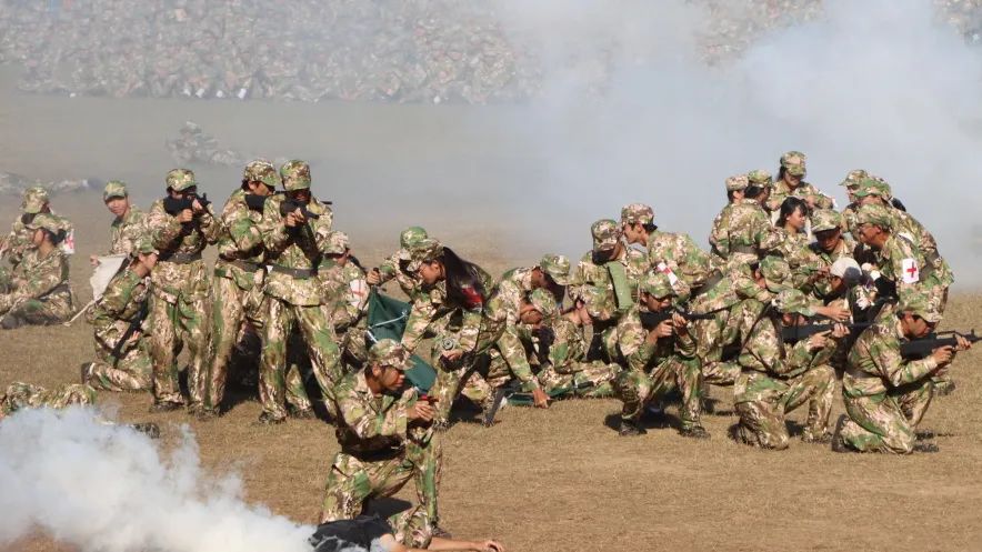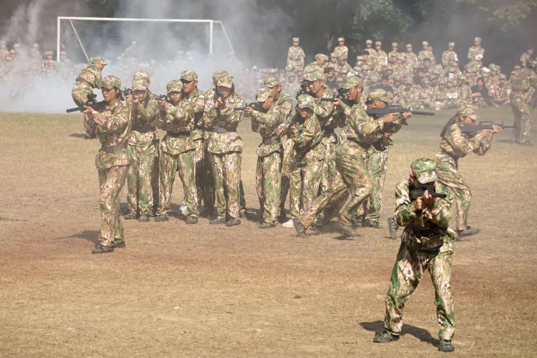 上午八時(shí)許,軍訓(xùn)會(huì)操拉開序幕。2023級參訓(xùn)新生按建制序列邁著整齊的步伐依次進(jìn)行隊(duì)列表演、軍體拳、棍法匕、戰(zhàn)場與救護(hù)、警棍盾牌操、偽裝與防護(hù)、擒敵拳、匕首操、防爆隊(duì)形等訓(xùn)練科目表演,同學(xué)們精神飽滿、隊(duì)列整齊、步伐堅(jiān)定、號聲嘹亮、姿態(tài)標(biāo)準(zhǔn)、氣勢如虹;響亮的口號,洋溢鮮活的青春力量,充分展示了華立學(xué)子斗志昂揚(yáng)、意氣風(fēng)發(fā)的精神風(fēng)貌和軍訓(xùn)取得的豐碩成果。
