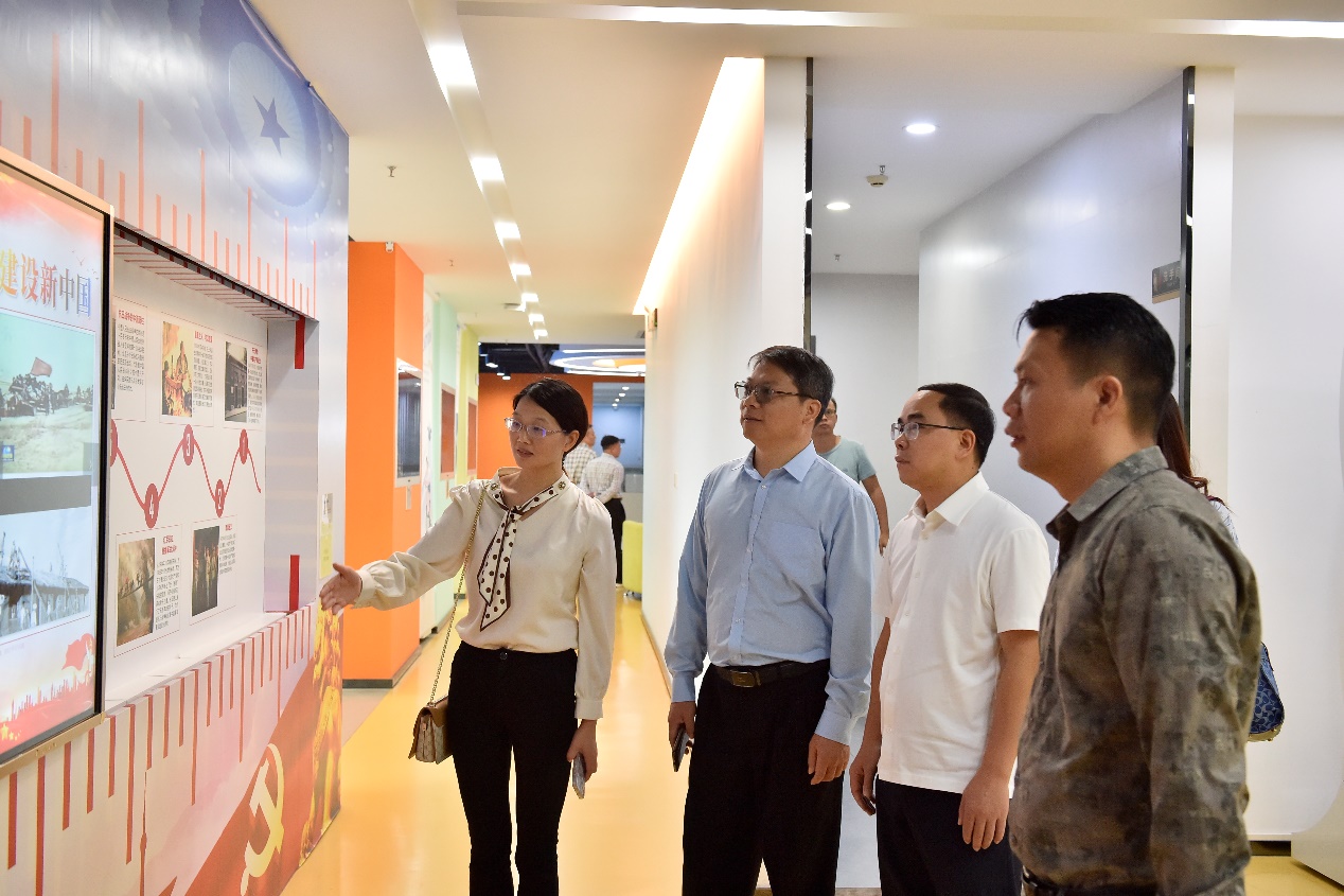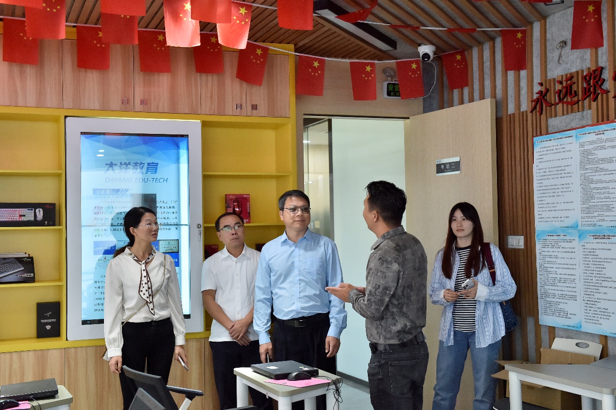 大洋教育陳小龍經(jīng)理帶隊(duì)參觀并介紹大洋教育公司的“酷?!碑a(chǎn)教融合云平臺、數(shù)字貿(mào)易港產(chǎn)教融合基地、鄉(xiāng)村振興實(shí)戰(zhàn)成果等。