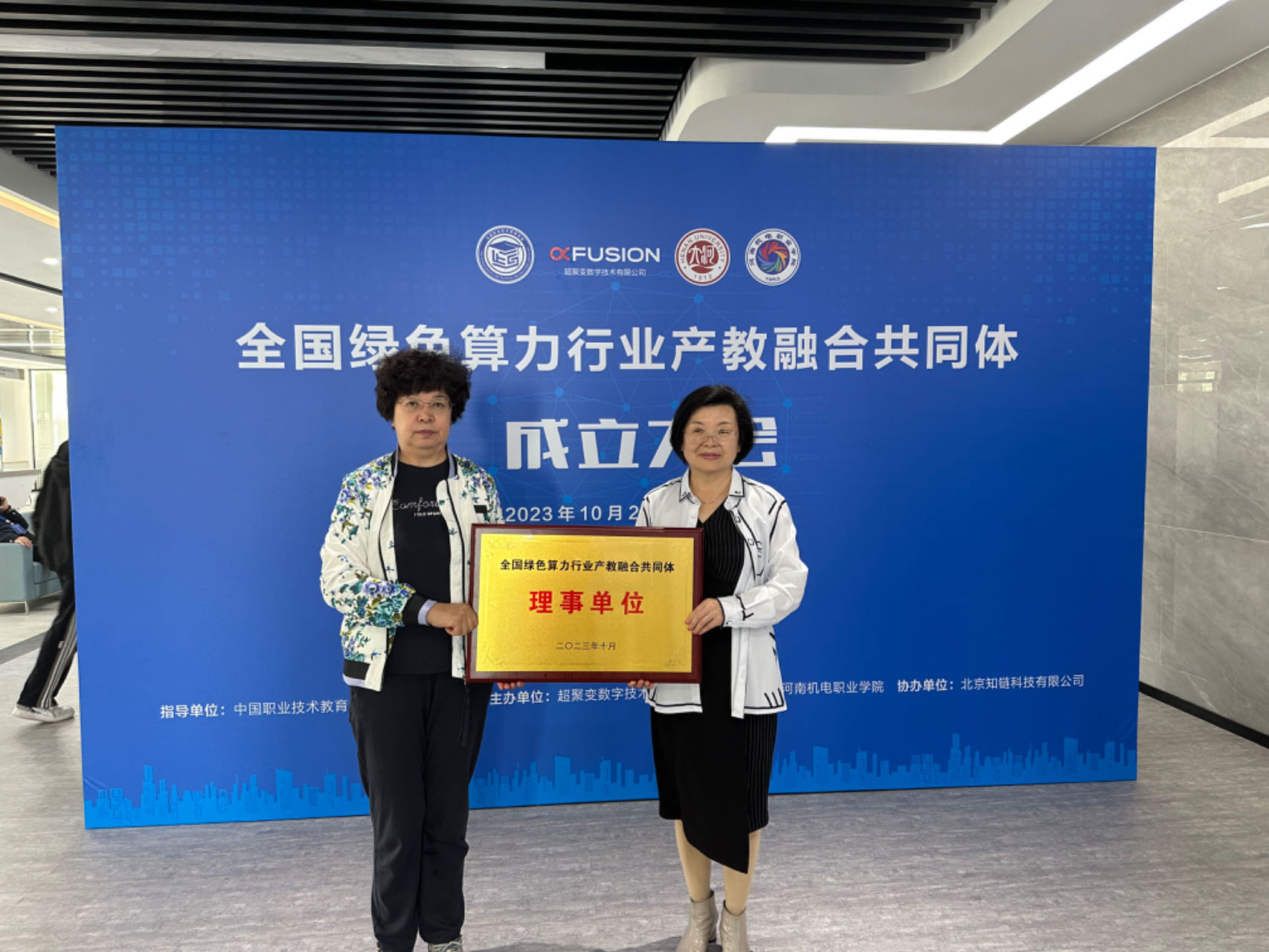 全國綠色算力行業(yè)產(chǎn)教融合共同體成立大會2023年10月29日在河南鄭州召開。河南省政府教育督導(dǎo)委員會、河南省教育廳相關(guān)領(lǐng)導(dǎo)以及來自全國高水平大學、職業(yè)院校、算力產(chǎn)業(yè)企業(yè)、科研機構(gòu)和行業(yè)協(xié)會等197家成員單位的領(lǐng)導(dǎo)、嘉賓出席會議。我校作為理事單位,由計算機信息工程學院王建華院長代表學校參會并接受理事單位授牌。