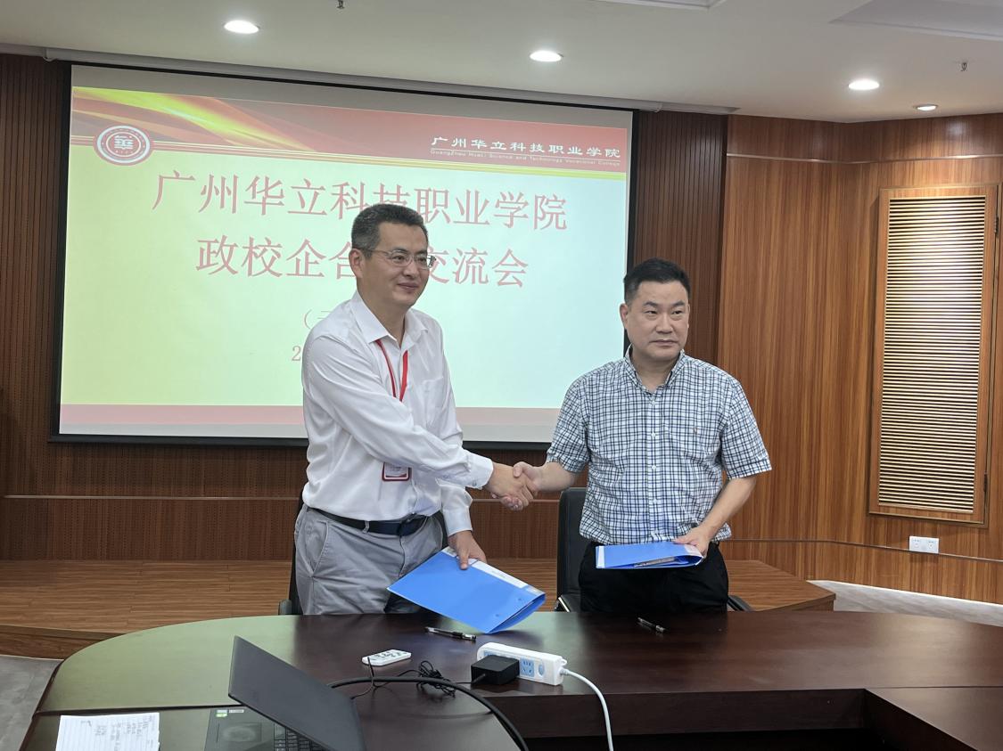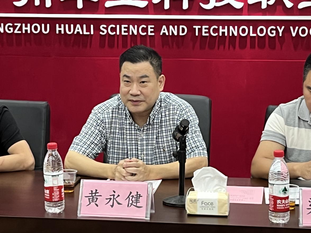 張劍鋒對黃永健一行到我校交流合作表示熱烈歡迎和衷心感謝,隨后介紹了學(xué)校發(fā)展歷程、辦學(xué)定位、學(xué)科特色、人才培養(yǎng)、學(xué)生實(shí)習(xí)就業(yè)等基本情況。張劍鋒指出,廣州華立科技職業(yè)學(xué)院近年來積極采用“請進(jìn)來、走出去”的形式,強(qiáng)化校政企合作,與有關(guān)地方政府和企業(yè)形成了優(yōu)勢互補(bǔ)、互惠互利、相互促進(jìn)、相互成就的良好局面,希望以此次交流活動(dòng)為契機(jī),互鑒互學(xué)促發(fā)展,在畢業(yè)生實(shí)習(xí)就業(yè)、共建產(chǎn)業(yè)學(xué)院、人才培養(yǎng)等方面,進(jìn)一步加強(qiáng)校政企三方合作,進(jìn)一步強(qiáng)化資源共享優(yōu)勢互補(bǔ)。