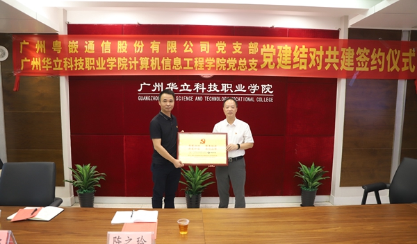 雙方代表就黨建結(jié)對共建工作進(jìn)行深入交流。學(xué)校黨委書記陳良聲與廣州粵嵌通信科技股份有限公司黨支部代表李春飛總經(jīng)理為黨建結(jié)對共建授牌,標(biāo)志著校企黨建結(jié)對共建的正式啟動。