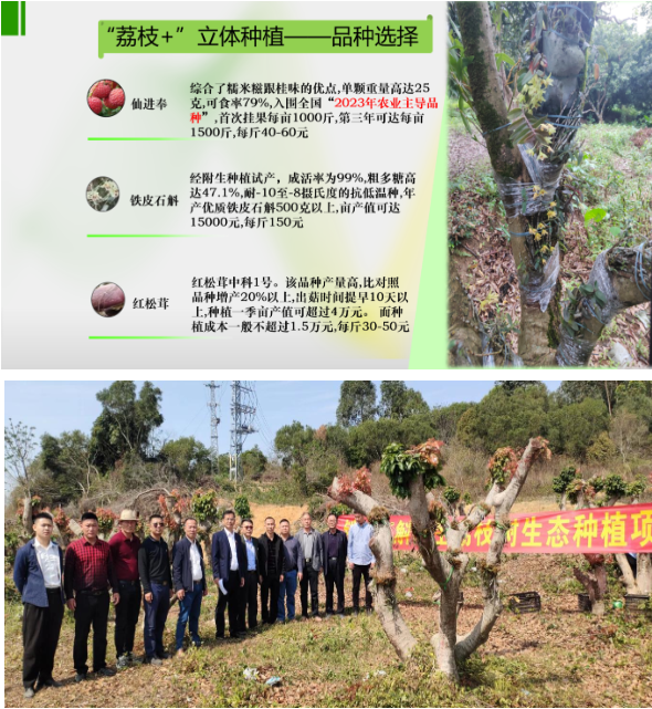 我校此次獲獎(jiǎng)案例為《荔枝+立體種植模式賦能鄉(xiāng)村振興》。2021年9月,《荔枝樹(shù)上種石斛》被廣東省科技廳立項(xiàng)為廣東省駐鎮(zhèn)幫鎮(zhèn)扶村農(nóng)村科技特派員項(xiàng)目,資助經(jīng)費(fèi)30萬(wàn)元,團(tuán)隊(duì)已在汕尾陸豐市推進(jìn)示范基地建設(shè)200余畝,學(xué)校所在地增城區(qū)白面石村、增城馬屋村、瓜嶺村等建立了多個(gè)推廣基地。項(xiàng)目已進(jìn)一步拓展成荔枝樹(shù)上種石斛、樹(shù)下種松茸、荔枝品種改良的立體經(jīng)濟(jì)模式。學(xué)校鄉(xiāng)村振興工作獲廣東省科學(xué)技術(shù)廳以《石斛花開(kāi)荔枝園,鄉(xiāng)村振興展風(fēng)采》在學(xué)習(xí)強(qiáng)國(guó)平臺(tái)上報(bào)道,2022年人民日?qǐng)?bào)和廣州日?qǐng)?bào)分別以《科技特派員團(tuán)隊(duì)助力革命老區(qū)白面石村鄉(xiāng)村振興工作》《圍觀!荔枝樹(shù)上種了名貴藥材》為題重點(diǎn)報(bào)道了我校鄉(xiāng)村振興新模式。《鐵皮石斛花開(kāi)荔枝果園,職業(yè)教育助力鄉(xiāng)村振興》入選中國(guó)職業(yè)技術(shù)教育學(xué)會(huì)《鄉(xiāng)村振興中國(guó)職教在行動(dòng)——職業(yè)教育服務(wù)鄉(xiāng)村振興典型案例》受到魯昕會(huì)長(zhǎng)的充分肯定和專題推介。