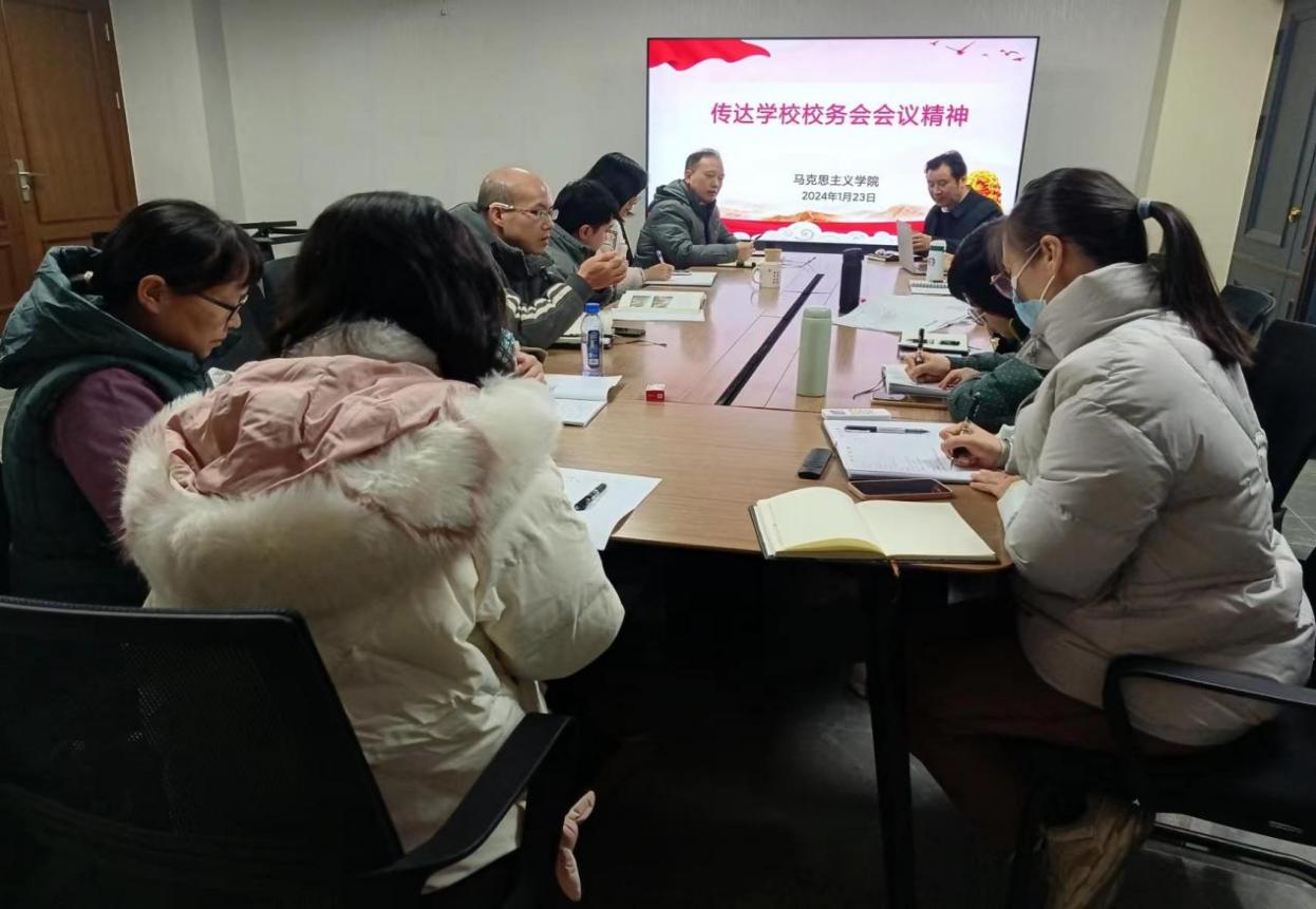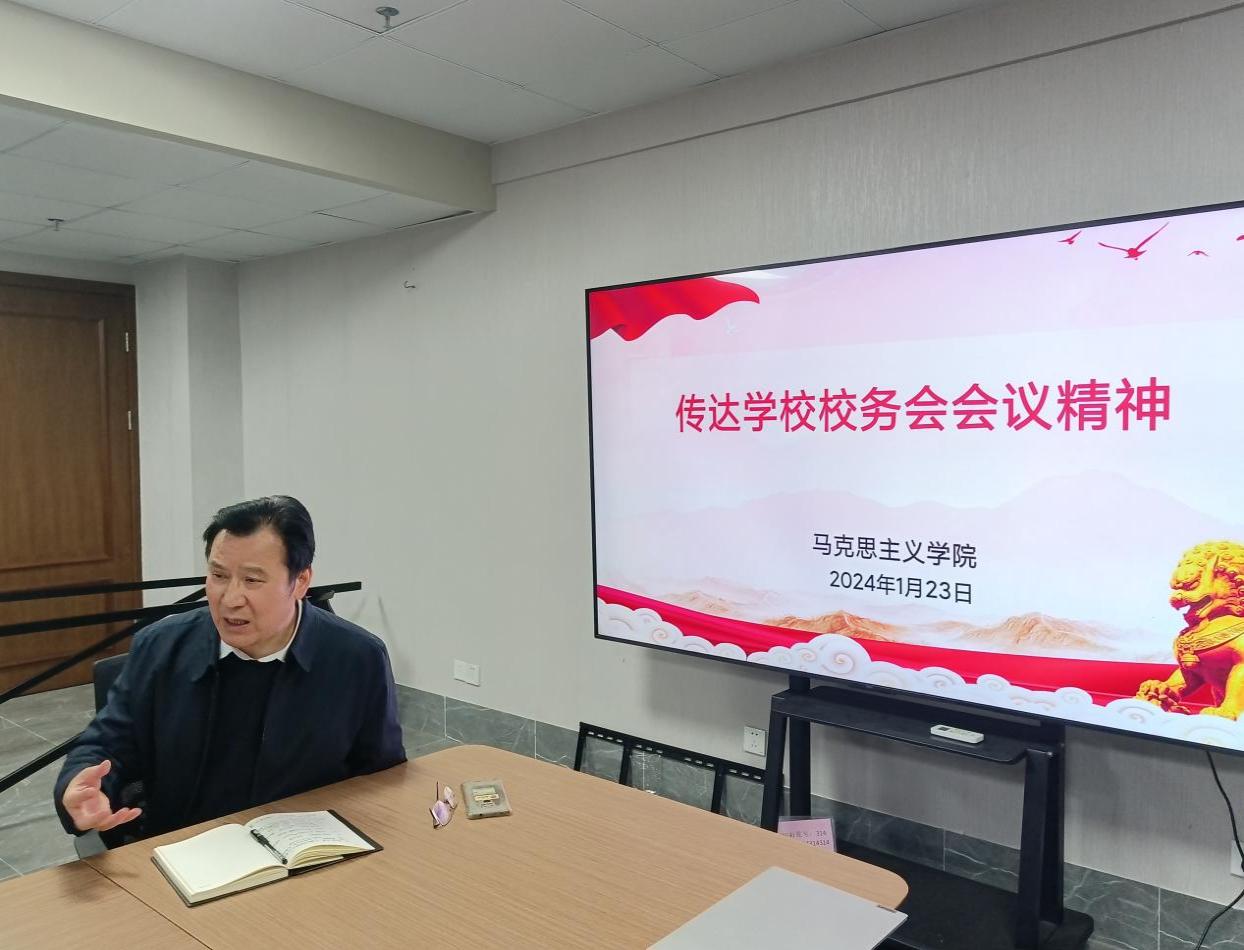 在傳達(dá)完學(xué)校校務(wù)會精神后,廖院長對馬克思主義學(xué)院期末的辦公室搬遷、學(xué)生成績錄入、資料歸檔、學(xué)院安全保衛(wèi)等工作提出了要求。他充分肯定辦公室搬遷工程的順利完成,同時對學(xué)院新聞稿的撰寫、修改、終審等環(huán)節(jié)進(jìn)行了安排、優(yōu)化和調(diào)整,并詳細(xì)闡述了學(xué)院2024年上半年的工作規(guī)劃,重點(diǎn)強(qiáng)調(diào)了兩項任務(wù),一是相關(guān)老師要利用假期做好參加全校公共基礎(chǔ)課教學(xué)能力比賽的準(zhǔn)備工作,二是全體老師要做好3月份即將舉辦的“紀(jì)念習(xí)近平總書記3·18講話五周年座談會”的工作。最后,他提醒大家注意假期安全,并提前祝愿大家度過一個愉快的假期。