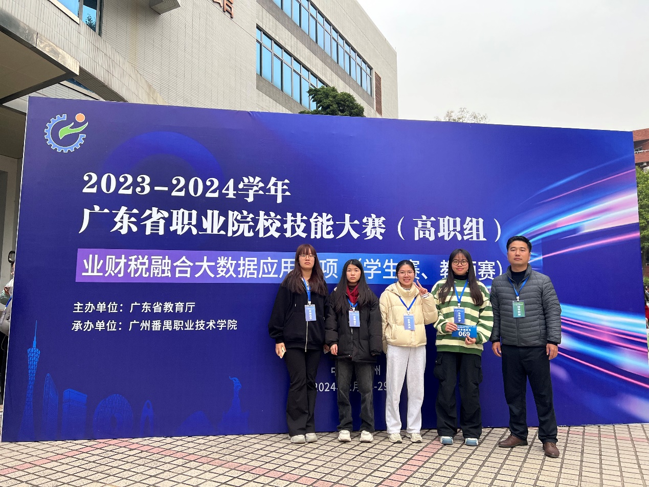 2024年3月2日,由省教育廳主辦的2023-2024年度廣東省職業(yè)院校技能大賽(高職組)“業(yè)財稅融合大數(shù)據(jù)應(yīng)用(學(xué)生賽)”賽項在廣州番禺職業(yè)技術(shù)學(xué)院舉行。全省有111支隊伍參加比賽,經(jīng)濟(jì)管理學(xué)院由林楚鈺、宋亦凡、陳康祺、胡若冰同學(xué)組成的參賽隊,在陳漢成和刁鏡林老師的精心指導(dǎo)下,參賽學(xué)生刻苦訓(xùn)練、配合默契,在眾多參賽隊伍中脫穎而出,榮獲省賽三等獎。