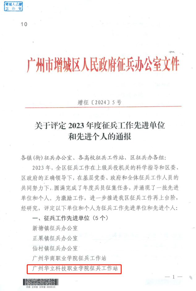 近日,我校征兵工作再次傳來喜訊,經(jīng)過層層評(píng)估,榮獲廣州市增城區(qū)2023年度“征兵工作先進(jìn)單位”稱號(hào),在2月27日的全省征兵工作會(huì)議中,我校大學(xué)生應(yīng)征入伍工作再次受到省教育廳、省征兵辦通報(bào)表?yè)P(yáng),征兵工作得到了上級(jí)部門的充分肯定,這份榮譽(yù)不僅是對(duì)我校征兵工作的肯定,也是對(duì)每一位參與此項(xiàng)工作的師生的認(rèn)可。