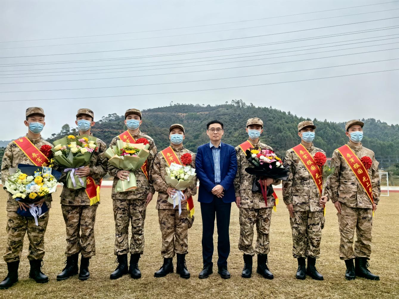 最后,學(xué)校武裝部陳勝軍部長和新兵們合影留念,歡送會的圓滿結(jié)束,新兵們帶著學(xué)校老師和家長的囑托與期望,踏上新的征程。