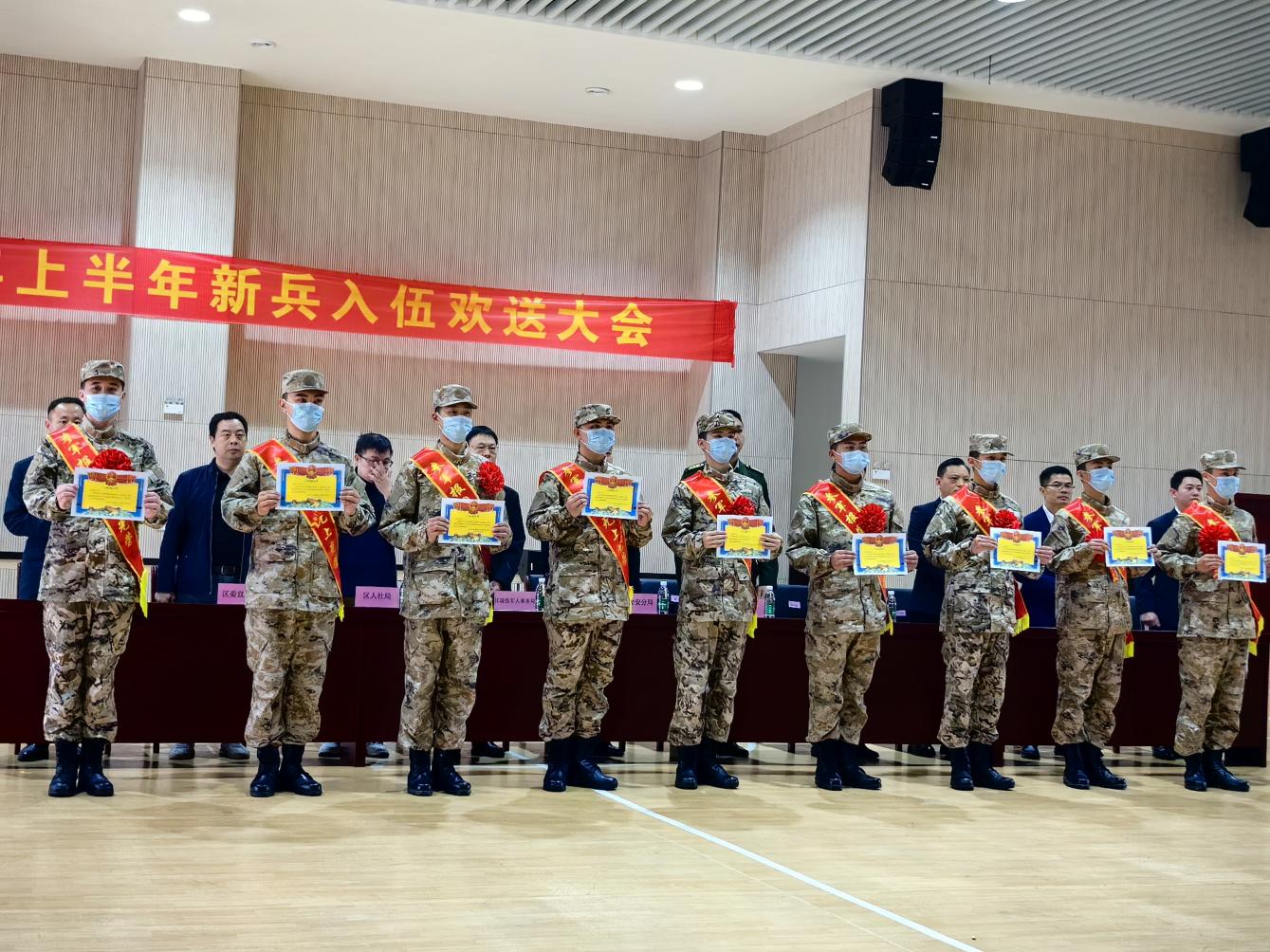 增城區(qū)人民政府領(lǐng)導(dǎo)向新兵頒發(fā)入伍通知書