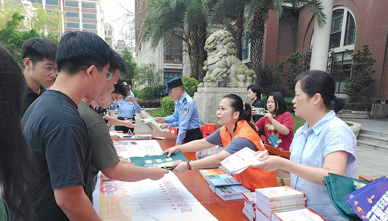 活動中,工作人員通過現(xiàn)場展覽、發(fā)放宣傳彩頁、案例講解等形式,讓同學(xué)門直觀了解國家全的重要性。