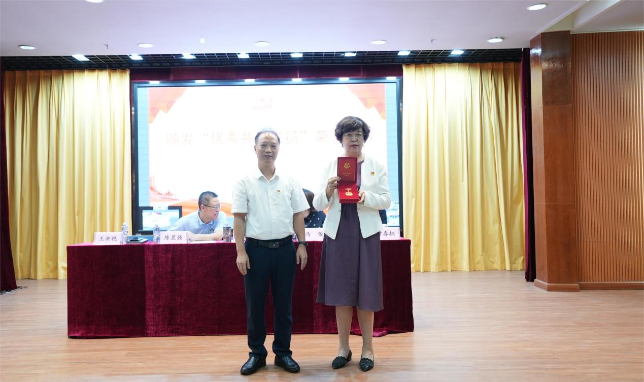 陳良聲、馬俊、陳顯強(qiáng)、高堯來、王洪艷、葉春桃、張劍鋒分別為受表彰的優(yōu)秀共產(chǎn)黨員、優(yōu)秀黨務(wù)工作者、先進(jìn)基層黨組織和“光榮在黨50年”紀(jì)念章獲得者頒發(fā)榮譽(yù)證書、牌匾。