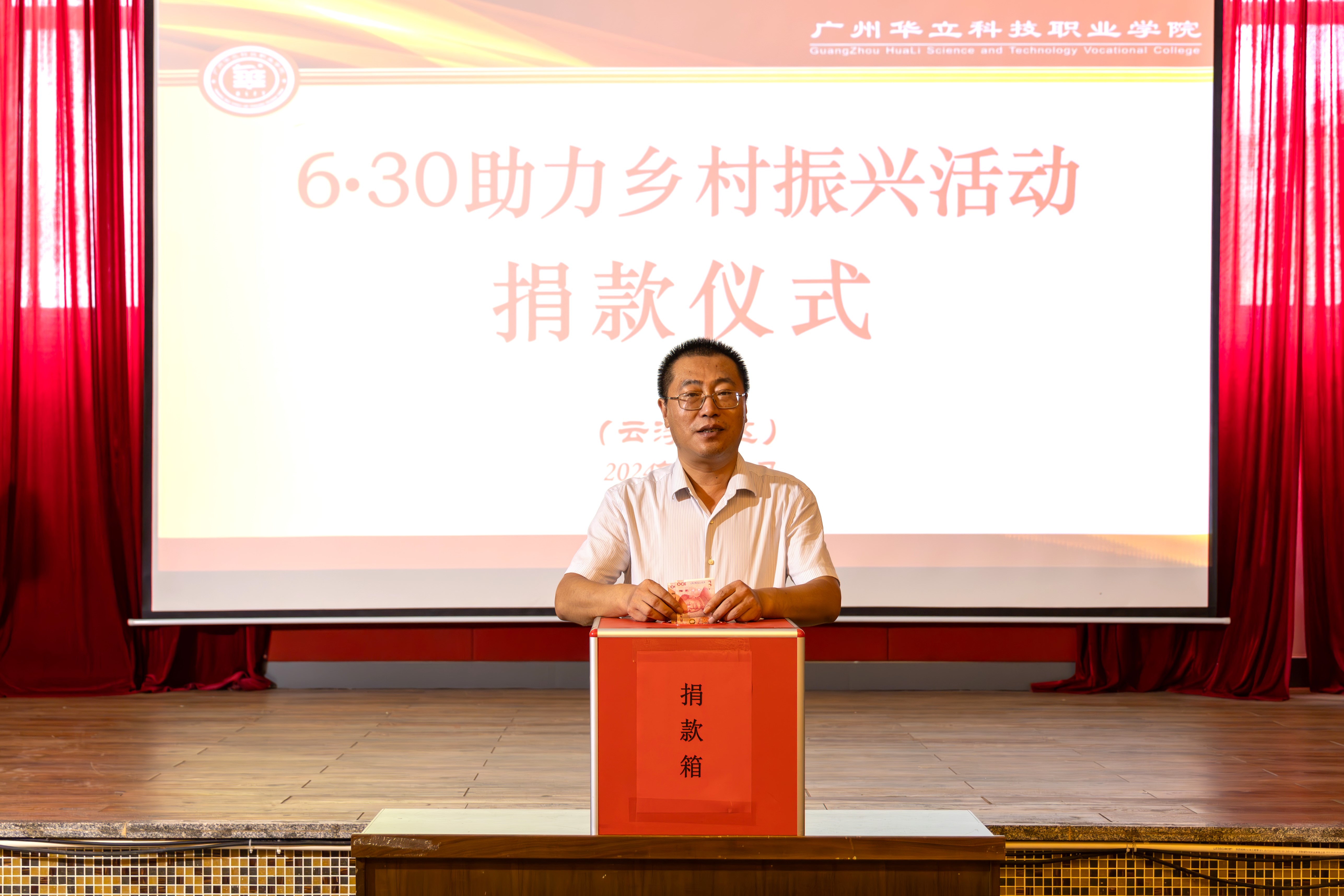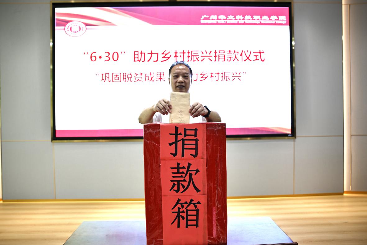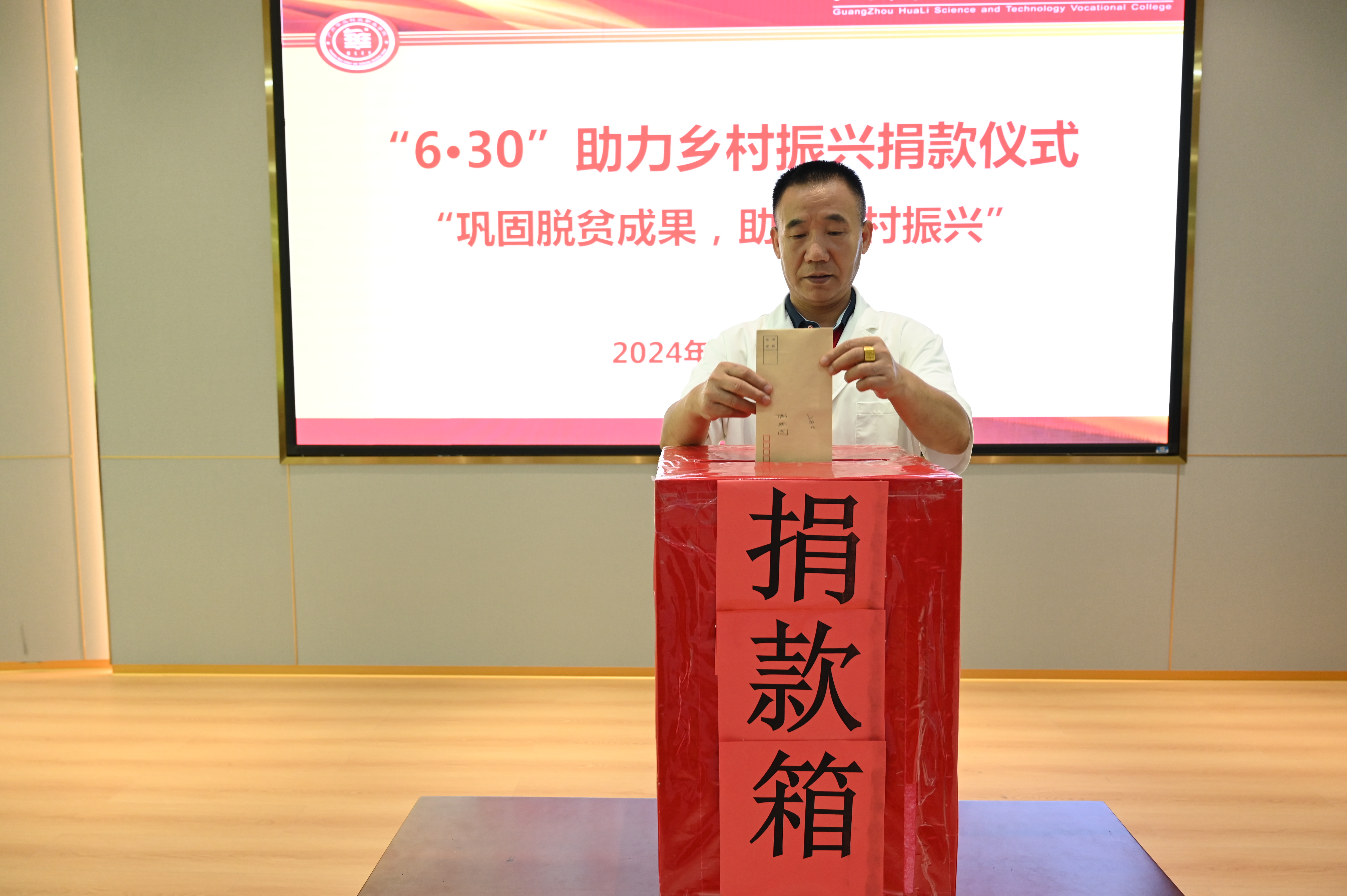 為進(jìn)一步弘揚(yáng)中華民族扶貧濟(jì)困、樂(lè)善好施的傳統(tǒng)美德,根據(jù)《廣東省2024年“6·30”助力鄉(xiāng)村振興活動(dòng)工作方案》文件精神,6月28日上午,學(xué)校工會(huì)舉行了“6·30”助力鄉(xiāng)村振興愛(ài)心捐款活動(dòng)。學(xué)校領(lǐng)導(dǎo)班子成員、教師代表、學(xué)生代表參加了捐款儀式。捐款儀式由工會(huì)主席、常務(wù)副校長(zhǎng)馬俊主持。