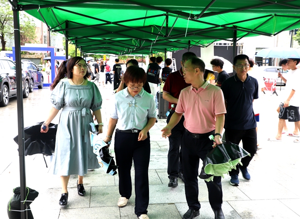 走訪中,校領(lǐng)導(dǎo)充分肯定了大家在酷熱中堅(jiān)守崗位、確保學(xué)生入學(xué)順暢有序的工作狀態(tài),以及周到細(xì)致的志愿服務(wù)精神,并表達(dá)了真誠的感謝。