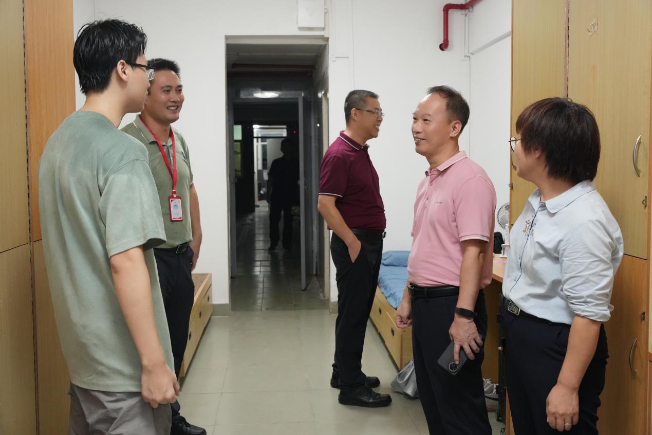 新學(xué)期伊始,為了解新生報(bào)到和入住情況,傳達(dá)學(xué)校對廣大學(xué)子的關(guān)懷與問候,9月6日上午,學(xué)校黨委書記陳良聲、常務(wù)副校長馬俊、副校長陳顯強(qiáng),王洪艷、校長助理葉春桃及相關(guān)職能部門負(fù)責(zé)人走訪校園,深入學(xué)生寢室,走訪慰問學(xué)生,并就相關(guān)工作提出指導(dǎo)意見,確保新學(xué)期各項(xiàng)工作平穩(wěn)有序進(jìn)行。