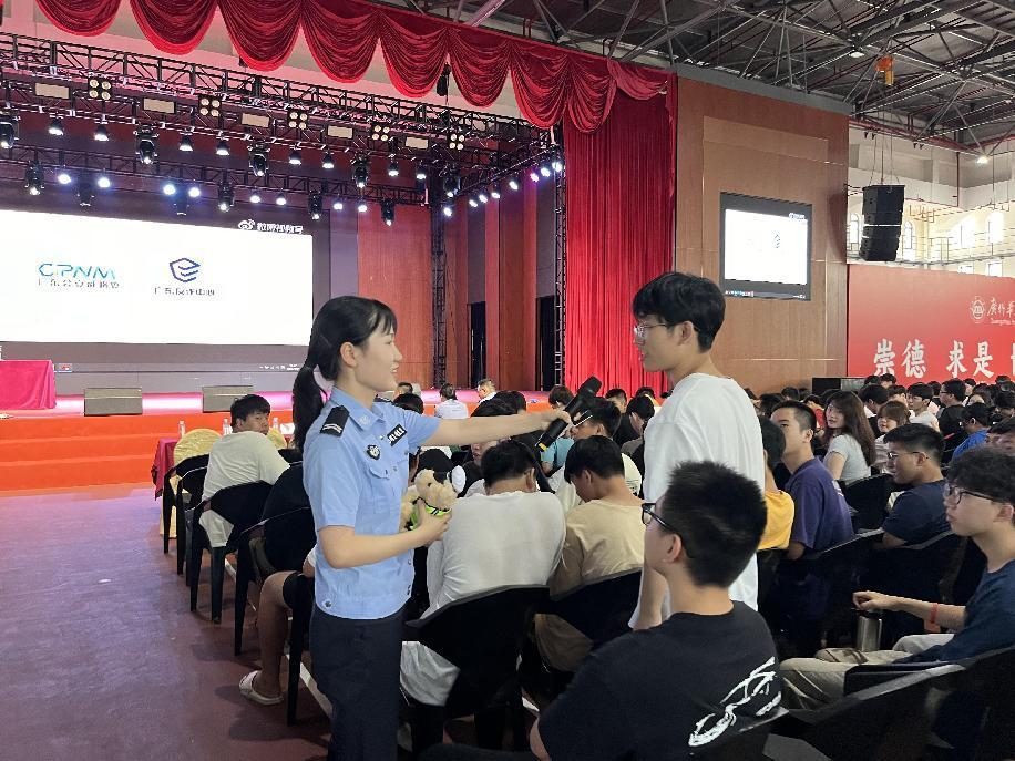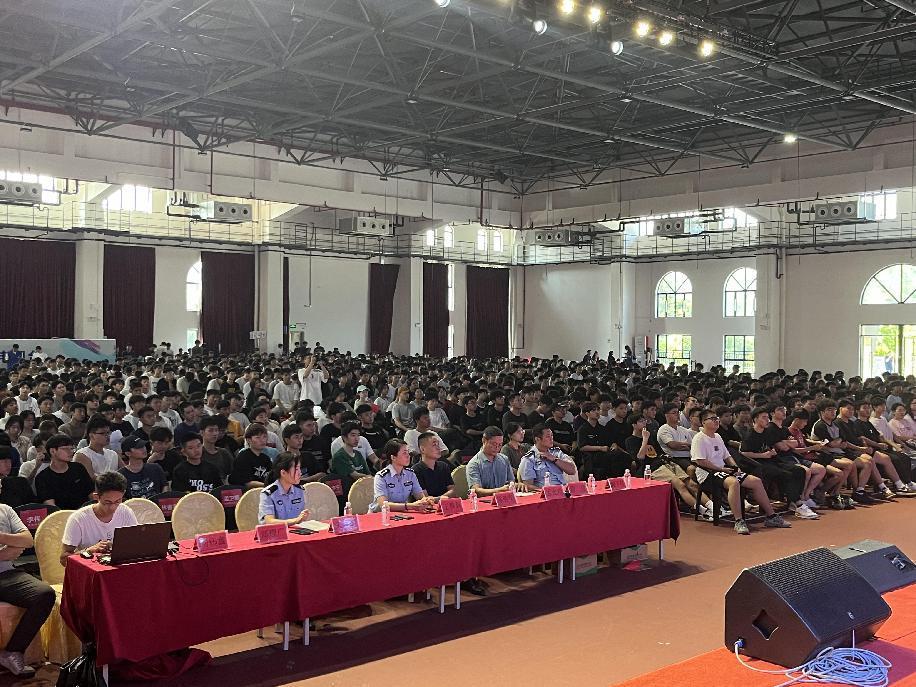 為加強新生入學安全教育工作,提高學生安全防范意識,全面貫徹落實總體國家安全觀,幫助新生同學們系好入校后“第一粒安全紐扣”,9月11日下午,我校在文體樓禮堂開展“開學第一課”安全宣講活動,出席本次嘉賓有增城區(qū)公安分局警官王雅莉、李健偉、朱彥媚,廣州華立科技職業(yè)學院保衛(wèi)處處長陳勝軍,廣州華立科技職業(yè)學院保衛(wèi)處保衛(wèi)科科長唐濤,還有各二級學院院長、學管主任等老師們。增城區(qū)公安分局三位警官為2024級新生上了一堂別開生面的安全教育課。