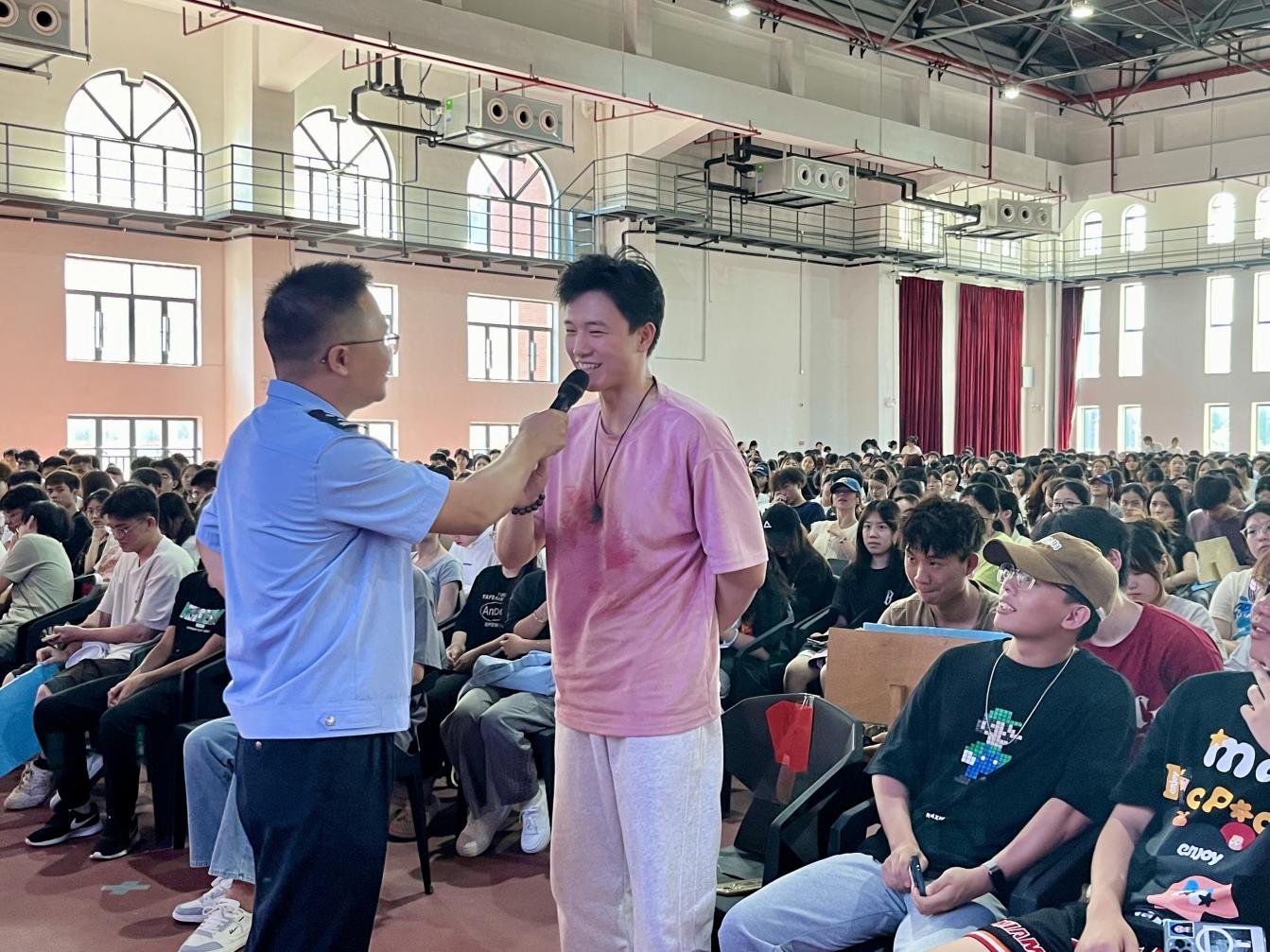 宣講活動由學校保衛(wèi)處薛思杰老師主持,活動開始,首先由王雅莉警官為我們介紹了常見的大學生違法犯罪的行為和講授如何進行預防,警示同學要認清犯罪危害、遠離違法犯罪。接著李健偉警官為同學們介紹反走私防溺水知識,普及走私的物品和走私行為手法,提醒新生牢記防溺水準則及防護要點。最后是朱彥媚警官講授如何守住我們的“錢袋子”,預防電信網絡詐騙。宣講過程中,三位警官以真實的案例深入淺出地剖析,并與同學們互動問題,送出精美禮品,現(xiàn)場反響熱烈。