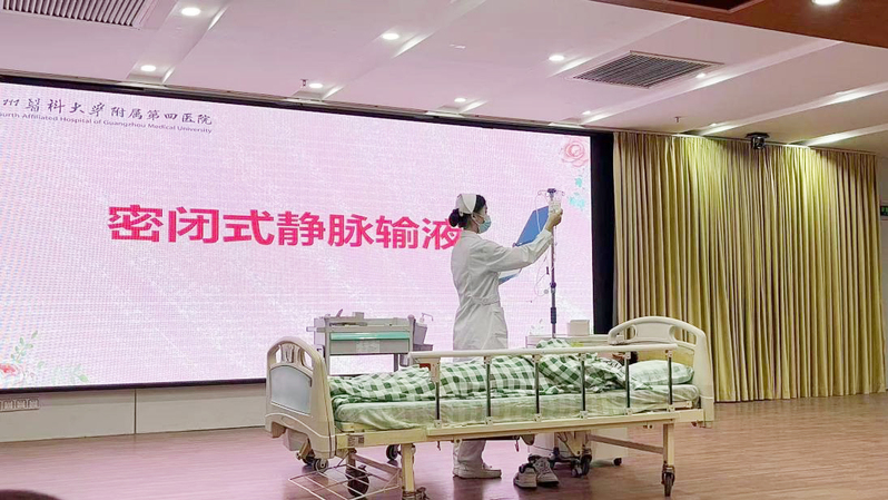 護(hù)理專業(yè)學(xué)子在廣州醫(yī)科大學(xué)附屬第四醫(yī)院技能比賽