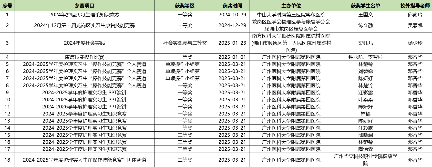實(shí)習(xí)醫(yī)院技能競賽獲獎(jiǎng)學(xué)生名單