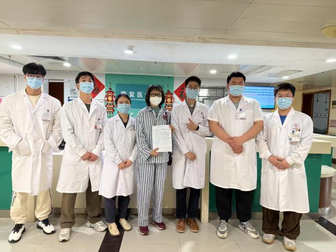 康復(fù)治療技術(shù)專業(yè)學(xué)子在廣州醫(yī)科大學(xué)附屬第四醫(yī)院與患者合影