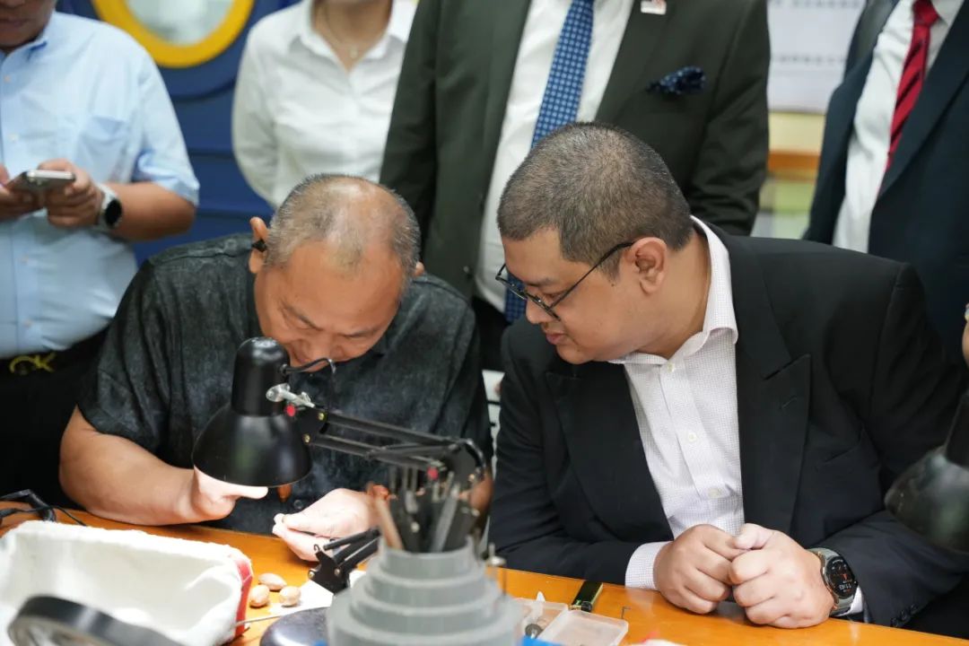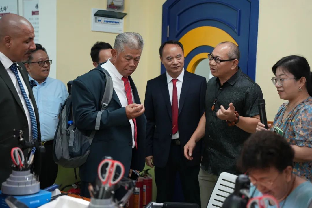 座談會(huì)結(jié)束后,學(xué)校領(lǐng)導(dǎo)陪同UPSI與PECSB一行參觀中醫(yī)藥文化館、欖雕工藝大師工作室、人工智能創(chuàng)新中心、校園特色景觀、生活學(xué)院實(shí)訓(xùn)基地。他們對(duì)學(xué)校的校園建設(shè)給予了充分的肯定。