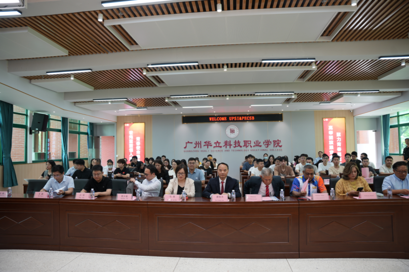 UPSI大學(xué)團(tuán)隊(duì)的國(guó)際事務(wù)與高等教育發(fā)展中心(IMAC)主任、校長(zhǎng)助理,Professor Dr. Ramlee binIsmail教授、博士,管理與經(jīng)濟(jì)學(xué)院院長(zhǎng)、副教授、博士,Profesor Magya Dr. Mohd Asri bin Mohd Noor;PECSB團(tuán)隊(duì)的總經(jīng)理Norhawaty Mansor,營(yíng)銷(xiāo)總監(jiān)Hosiny Mohamed Hosiny Saad,Dato' Rocky Foo Wei Sze,諾哈瓦蒂女士的私人助理Mohd Asyrani Bin Rosani;廣東江門(mén)中醫(yī)藥職業(yè)學(xué)院教務(wù)部助理朱珍佶;岳陽(yáng)現(xiàn)代服務(wù)職業(yè)學(xué)院繼續(xù)教育學(xué)院辦公室主任鐘森林等高校代表;同時(shí),中國(guó)兵器工業(yè)集團(tuán)兵器人才研究院北方至信華南區(qū)業(yè)務(wù)部主任莫少謀、校企合作辦公室副主任杜惠詩(shī)、辦公室副主任莫云天,南大安高資本市場(chǎng)研究院國(guó)際交流學(xué)院院長(zhǎng)朱智勇、副院長(zhǎng)廖宇、招生處副主任趙彬、教務(wù)處助理麥嘉瑜、運(yùn)營(yíng)部助理莫武岸等業(yè)界精英也應(yīng)邀出席;此外,學(xué)校校長(zhǎng)廖俊杰、常務(wù)副校長(zhǎng)馬俊、校辦主任李鵬、繼續(xù)教育學(xué)院副院長(zhǎng)呂靖、團(tuán)委書(shū)記張超越、經(jīng)濟(jì)管理學(xué)院院長(zhǎng)劉惠玲等領(lǐng)導(dǎo)以及教師代表也悉數(shù)到場(chǎng)。學(xué)校與來(lái)自校企7家單位的領(lǐng)導(dǎo)嘉賓共同參加了交流座談會(huì)并同時(shí)見(jiàn)證了廣州華立科技職業(yè)學(xué)院優(yōu)學(xué)國(guó)際語(yǔ)言中心成立的重要時(shí)刻。