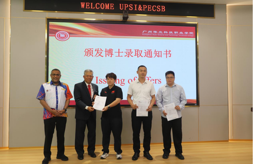 學(xué)校與蘇丹依德里斯教育大學(xué)合作的漢語(yǔ)言文化、教育管理專(zhuān)業(yè)碩博學(xué)歷提升項(xiàng)目,突破了以往的項(xiàng)目壁壘,全面響應(yīng)了國(guó)家“一帶一路“職教出?!背h,也為華立職院的教職工們搭建了良好的國(guó)際視野平臺(tái)。馬來(lái)西亞蘇丹依德里斯教育大學(xué)的領(lǐng)導(dǎo)也為攻讀博士學(xué)歷的教職工代表頒發(fā)了錄取通知書(shū)。