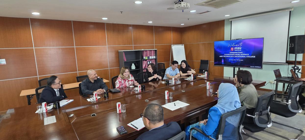 隨后,代表團訪問了馬來西亞管理與科技大學(MSU),與副校長、國際交流處負責人及中國市場相關(guān)負責人進行會談。雙方重點探討了中醫(yī)學專業(yè)“國際專升本”聯(lián)合培養(yǎng)路徑,并就我校華立附屬學校國際班學生的升學通道、課程對接等事宜交換意見。會后,代表團參觀了校園,深切感受到當?shù)厣詈竦奈幕滋N與教育活力。