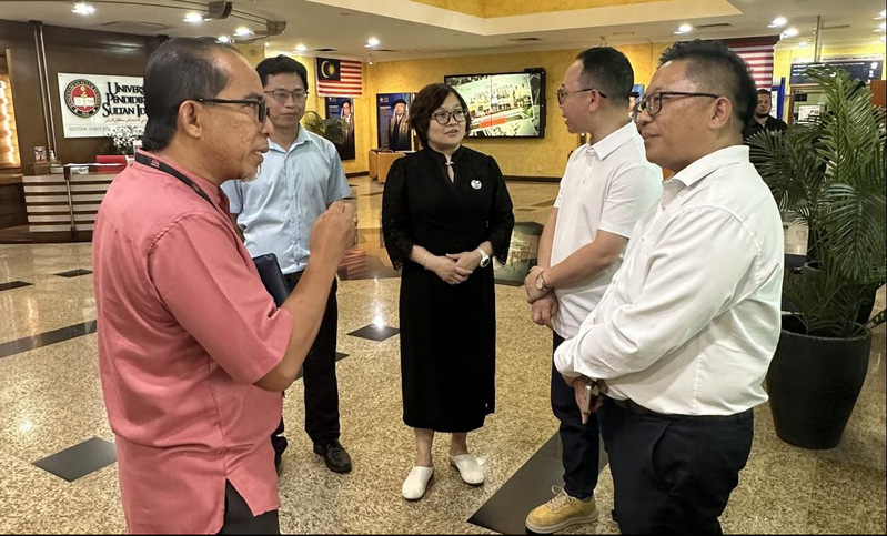 在馬來西亞蘇丹依德里斯教育大學(UPSI),代表團參觀了兩個校區(qū)的圖書館、行政樓及中文系等教學設(shè)施,并與體育學院院長舉行會談。雙方圍繞“職教出?!敝黝},探討了在體育教育、師資培訓、課程共建、中文+等領(lǐng)域合作的可能性,一致同意未來加強溝通,推動具體項目落地。
