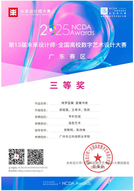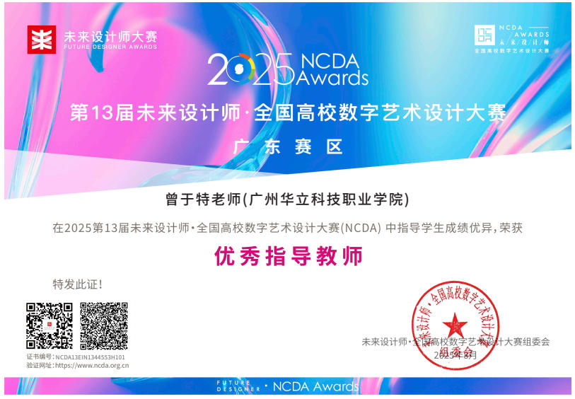 在2025年舉辦的第13屆未來設(shè)計師·全國高校數(shù)字藝術(shù)設(shè)計大賽(NCDA)中,藝術(shù)與傳媒學(xué)院師生憑借其卓越的創(chuàng)意和精湛的技術(shù),榮獲多項大獎。未來設(shè)計師·全國高校數(shù)字藝術(shù)設(shè)計大賽(NCDA)是入選《全國普通高校大學(xué)生競賽排行榜》,近20家省教育廳認定,“學(xué)習(xí)強國”學(xué)習(xí)平臺支持,對接聯(lián)合國國際賽的全國性大學(xué)生競賽。是高校教育教學(xué)改革和創(chuàng)新人才培養(yǎng)的重要競賽項目之一,具有極高的知名度與影響力。本次大賽是由全國高校數(shù)字藝術(shù)設(shè)計專業(yè)委員會主辦,旨在挖掘和培養(yǎng)數(shù)字藝術(shù)設(shè)計領(lǐng)域的未來之星,大賽已連續(xù)舉辦13屆,為藝術(shù)設(shè)計領(lǐng)域的高水平知名賽事,是我院師生積極參與的重要專業(yè)競賽之一。