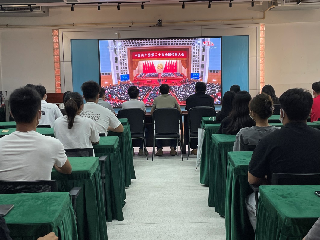 學(xué)校領(lǐng)導(dǎo)和中層干部在廣州校區(qū)集中收看黨的二十大開幕式直播