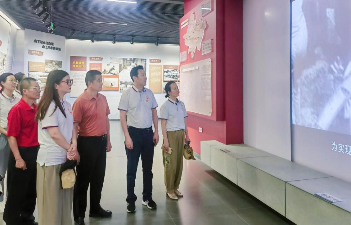 在參觀長崗坡紀(jì)念館時(shí),全體黨員通過聽解說、看實(shí)物、觀看紀(jì)錄片和圖片等多種方式,切身感受長崗坡渡槽的宏大雄偉和建造過程的無比艱辛。