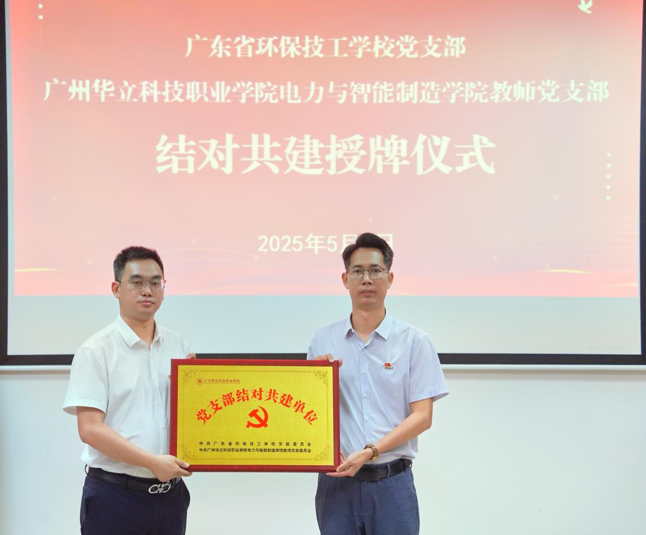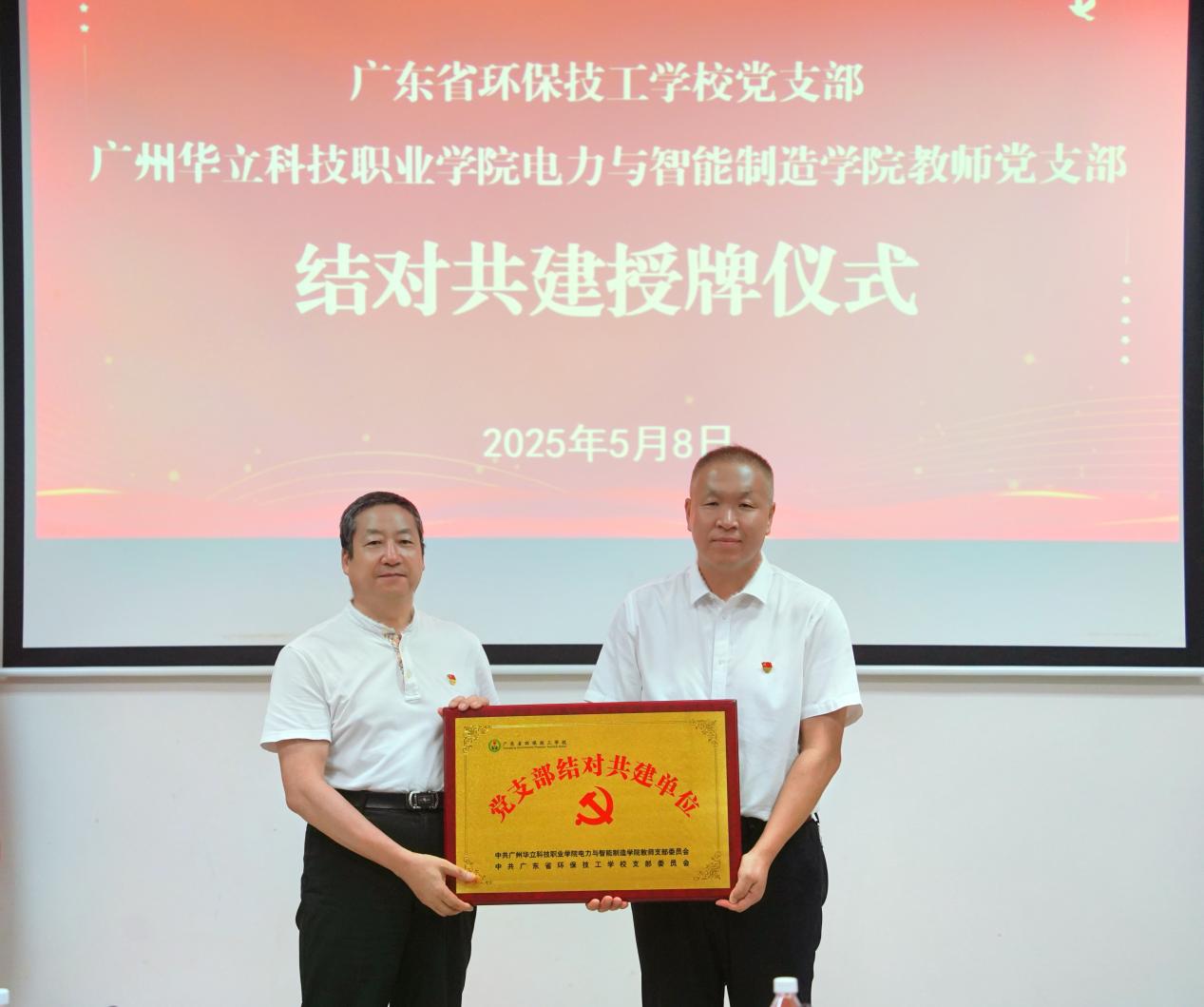 (褚玉峰為廣東省環(huán)保技工學(xué)校黨支部授牌)