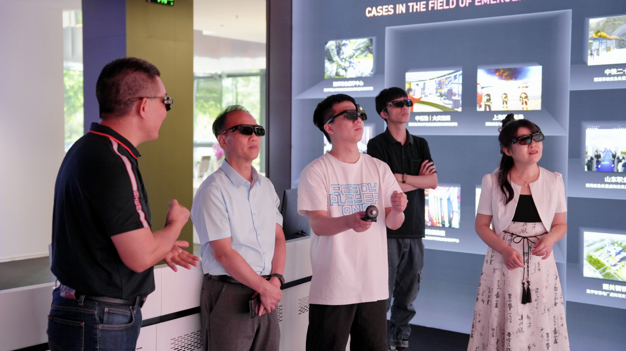陳良聲書(shū)記首先對(duì)企業(yè)的技術(shù)成果給予高度贊賞,并對(duì)未來(lái)科技發(fā)展前景表達(dá)了殷切期待。針對(duì)校企合作的深化路徑,陳書(shū)記提出幾點(diǎn)要求,一是人才培養(yǎng)體系革新,在修訂人才培養(yǎng)方案時(shí),廣泛吸納行業(yè)專家、企業(yè)技術(shù)骨干的專業(yè)建議;二是科研合作深度聯(lián)動(dòng),與企業(yè)共建科研項(xiàng)目合作機(jī)制,圍繞虛擬現(xiàn)實(shí)、數(shù)智技術(shù)、數(shù)字藝術(shù)等領(lǐng)域開(kāi)展聯(lián)合攻關(guān),推動(dòng)技術(shù)成果轉(zhuǎn)化與教學(xué)案例沉淀;三是教學(xué)成果協(xié)同創(chuàng)造,打造具有示范效應(yīng)的校企合作教學(xué)成果。