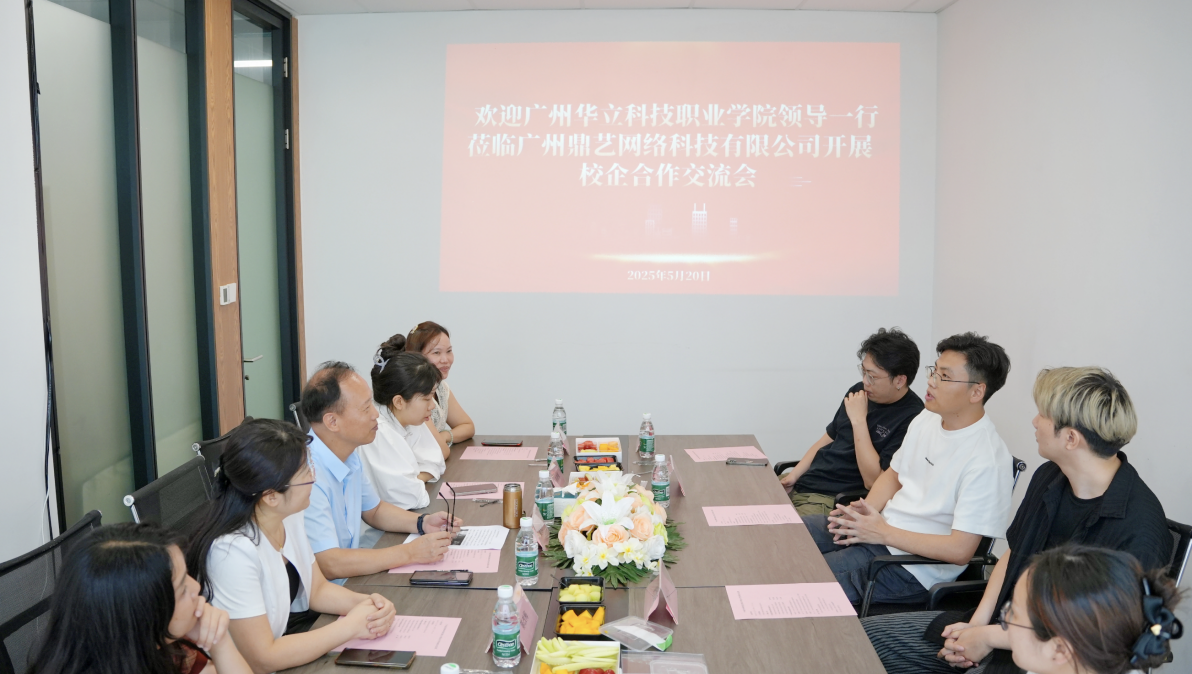 廣州華立科技職業(yè)學(xué)院黨委書記陳良聲、藝傳學(xué)院黨總支書記兼副院長陳改梅等一行 7 人出席會(huì)議,與廣州鼎藝網(wǎng)絡(luò)科技有限公司相關(guān)高管開展交流。