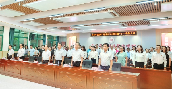 7月1日,學校在圖書館104報告廳舉辦慶祝中國共產(chǎn)黨成立104周年暨“七一”表彰大會,學校領(lǐng)導、黨委委員、職能部門主要負責人、各二級黨組織書記、獲獎先進個人以及師生黨員代表參加,常務副校長馬俊主持會議,會議連線云浮校區(qū)。