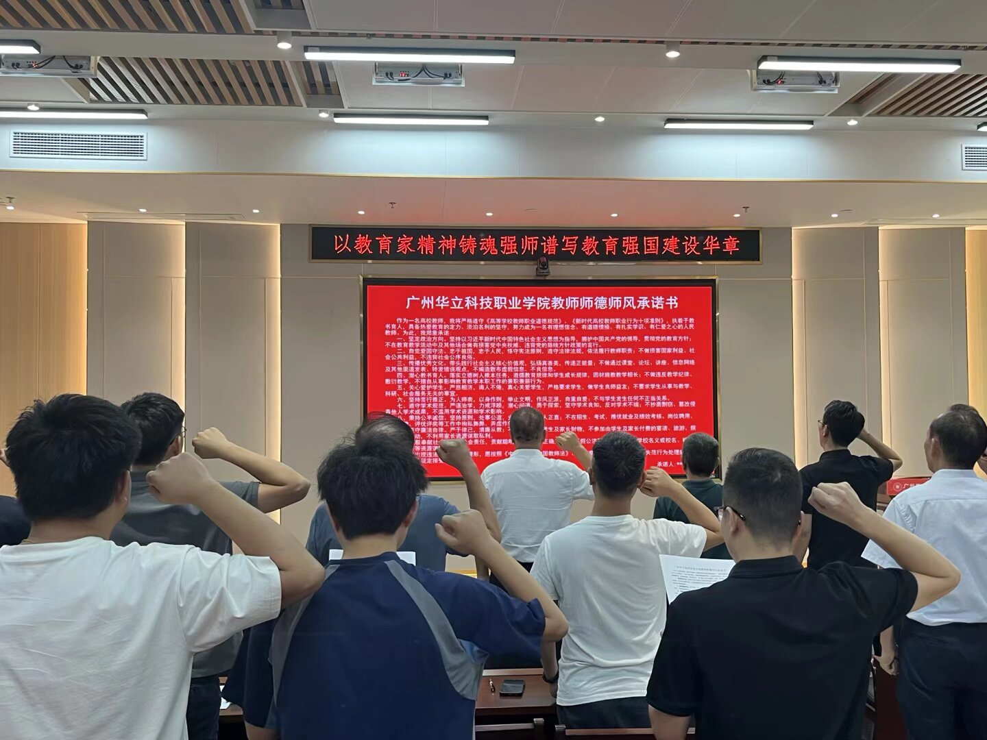 首先,全體教師共同以莊重的聲音立誓承諾《廣州華立科技職業(yè)學(xué)院教師師德師風承諾書》:嚴格遵守《高等學(xué)校教師職業(yè)道德規(guī)范》、《新時代高校教師職業(yè)行為十項準則》,努力成為有理想信念、有道德情操、有扎實學(xué)識、有仁愛之心的人民教師。隨后現(xiàn)場進行了簽訂承諾書儀式,全體教師簽署《廣州華立科技職業(yè)學(xué)院教師師德師風承諾書》,以書面形式固化承諾內(nèi)容,進一步強化了對師德師風規(guī)范的認同與踐行,彰顯了全體教師恪守師德、潛心育人的堅定決心。