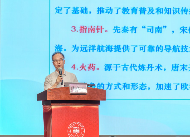 隨后,陳良聲通過一系列詳實(shí)的數(shù)據(jù)和生動(dòng)的案例,全景式展現(xiàn)了我國(guó)近年來在科技創(chuàng)新方面所取得了舉世矚目的突破。從“嫦娥”探月、“天問”探火到“北斗”導(dǎo)航,深邃太空一次次留下中國(guó)印記;從“奮斗者”號(hào)萬米深潛到中國(guó)芯片快速崛起,重大工程實(shí)現(xiàn)歷史性跨越;從量子計(jì)算研究到人工智能、數(shù)字經(jīng)濟(jì)蓬勃發(fā)展,前沿領(lǐng)域開始進(jìn)入并跑、領(lǐng)跑階段;5G技術(shù)、高鐵技術(shù)構(gòu)建起亮麗的“國(guó)家名片”;東風(fēng)-61亮相今年九三閱兵、陸??栈M成的“三位一體”戰(zhàn)略核打擊力首次完整公開展示。“我國(guó)科技實(shí)力正在從量的積累邁向質(zhì)的飛躍,從點(diǎn)的突破邁向系統(tǒng)能力提升,科技創(chuàng)新取得歷史性成就、發(fā)生歷史性變革,中國(guó)的科技創(chuàng)新不斷突破了人們的想象。”陳良聲充滿自信的敘述,激發(fā)了在場(chǎng)師生的強(qiáng)烈共鳴與無比自豪。