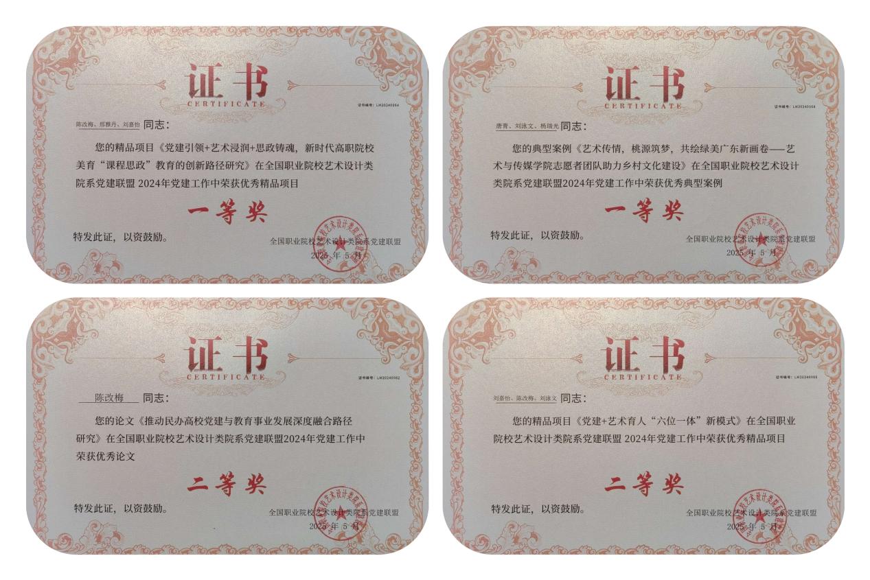 近日,全國(guó)職業(yè)院校藝術(shù)設(shè)計(jì)類院系黨建聯(lián)盟 2024 年黨建工作評(píng)選結(jié)果揭曉,廣州華立科技職業(yè)學(xué)院藝術(shù)與傳媒學(xué)院黨總支的工作得到了同行的充分肯定,在優(yōu)秀精品項(xiàng)目、優(yōu)秀典型案例、優(yōu)秀論文評(píng)比中喜獲一等獎(jiǎng)2項(xiàng)、二等獎(jiǎng)2項(xiàng)、三等獎(jiǎng)3項(xiàng),充分彰顯了我校藝術(shù)與傳媒學(xué)院黨總支在黨建引領(lǐng)高質(zhì)量發(fā)展、課程思政、藝術(shù)沁潤(rùn)、社會(huì)服務(wù)、鄉(xiāng)村振興以及專業(yè)建設(shè)等方面工作的能力和水平。