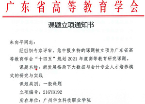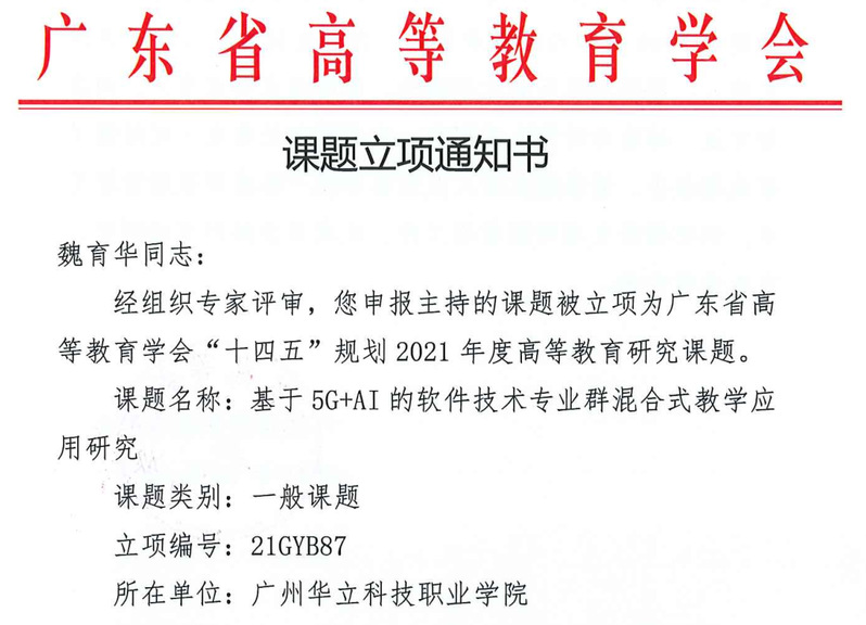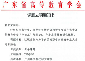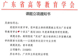 經(jīng)各單位申報(bào)、資格審查、專(zhuān)家評(píng)審,并結(jié)合全省申報(bào)總體情況,廣東省高等教育學(xué)會(huì)“十四五”規(guī)劃2021年度高等教育研究課題擬立項(xiàng)303項(xiàng),其中重點(diǎn)課題11項(xiàng)、一般課題196項(xiàng)、青年課題96項(xiàng)。我校共申報(bào)8項(xiàng),其中《基于“5G+AI”的“軟件技術(shù)專(zhuān)業(yè)群”混合式教學(xué)應(yīng)用研究》等四個(gè)課題獲一般課題立項(xiàng),《高職院校“雙創(chuàng)”能力培養(yǎng)的工作室模式教學(xué)的探索與實(shí)踐——以視覺(jué)傳達(dá)設(shè)計(jì)專(zhuān)業(yè)為例》等三個(gè)課題獲青年課題立項(xiàng),特此祝賀。