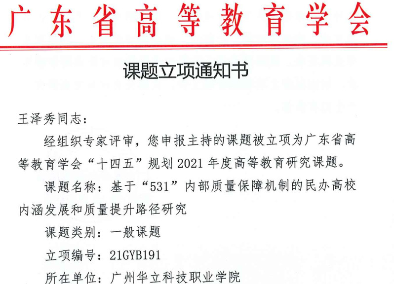 為深入貫徹黨的教育方針和習(xí)近平總書(shū)記關(guān)于教育的重要論述,助力高等教育高質(zhì)量發(fā)展,根據(jù)《廣東省高等教育學(xué)會(huì)事業(yè)發(fā)展“十四五”規(guī)劃》《廣東省高等教育學(xué)會(huì)2021年工作要點(diǎn)》《廣東省高等教育學(xué)會(huì)課題管理制度》,廣東省高等教育學(xué)會(huì)啟動(dòng)了2021年度課題申報(bào)工作。