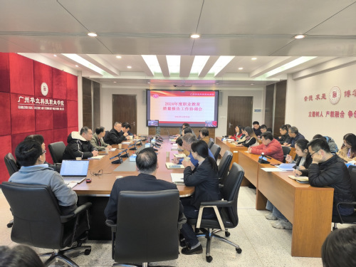 為做好我校職業(yè)教育質(zhì)量報告(2024年度)編制、發(fā)布和報送工作,12月20日上午,廣州、云浮兩校區(qū)同步召開2024年度職業(yè)教育質(zhì)量報告工作協(xié)調(diào)會。會議由副校長陳顯強主持,校長助理張劍鋒、兩校區(qū)教務(wù)處相關(guān)人員、各職能部門負責人、各二級學院負責人及教研主任出席了本次會議。