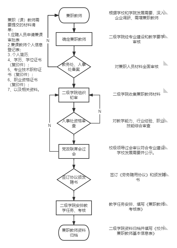 3.二級(jí)學(xué)院組織對(duì)兼職教師資格審核合格后,并收集審核合格人員的證書等資料,報(bào)備教務(wù)處、人事處;