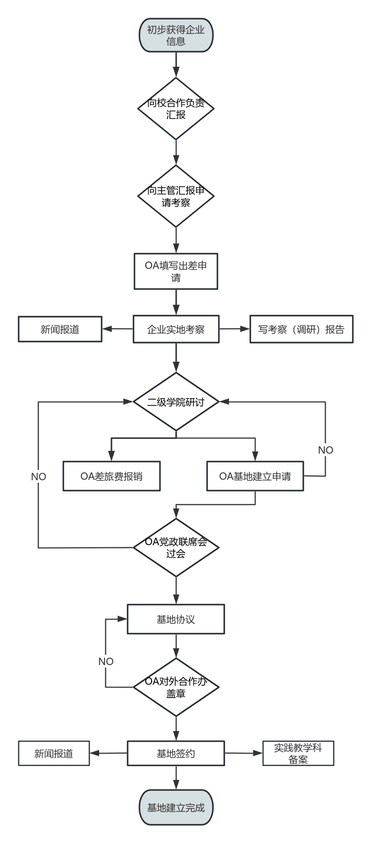 6.組織安排落實簽訂校企合作協(xié)議書(合同),協(xié)議書經(jīng)學(xué)校OA外合辦審批流程,方能辦理蓋章業(yè)務(wù)。