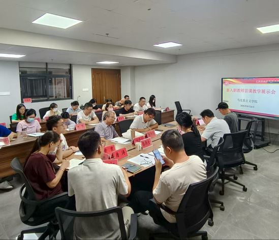 為幫助新入職的青年教師盡快站穩(wěn)講臺,提高全體思政課教師的教學(xué)能力,打造一支高素質(zhì)思政課教師隊(duì)伍,8月26日下午,馬克思主義學(xué)院在G1-314室舉行兩名新入職年輕教師的首課教學(xué)展示及評課活動,學(xué)院全體教師參加。