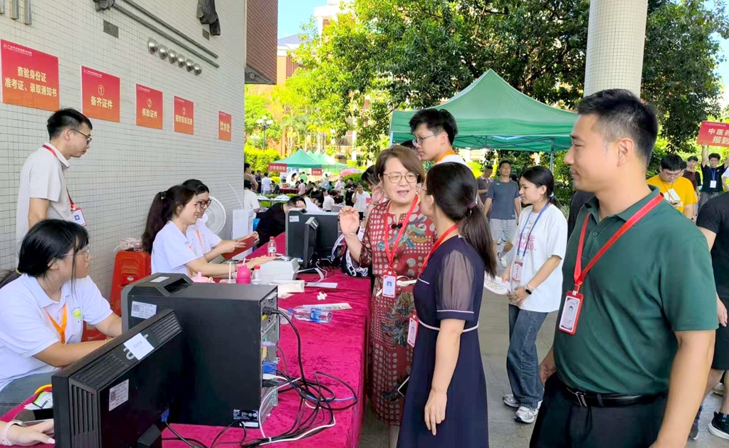 學(xué)校領(lǐng)導(dǎo)高度重視迎新工作,學(xué)校校長(zhǎng)廖俊杰、黨委書(shū)記陳良聲、副校長(zhǎng)陳顯強(qiáng)及高堯來(lái)等校領(lǐng)導(dǎo)蒞臨迎新現(xiàn)場(chǎng),走訪教務(wù)處迎新工作點(diǎn),對(duì)教務(wù)處提前梳理迎新環(huán)節(jié)、優(yōu)化服務(wù)流程的舉措給予肯定,并就進(jìn)一步提升迎新服務(wù)質(zhì)量提出指導(dǎo)意見(jiàn)。