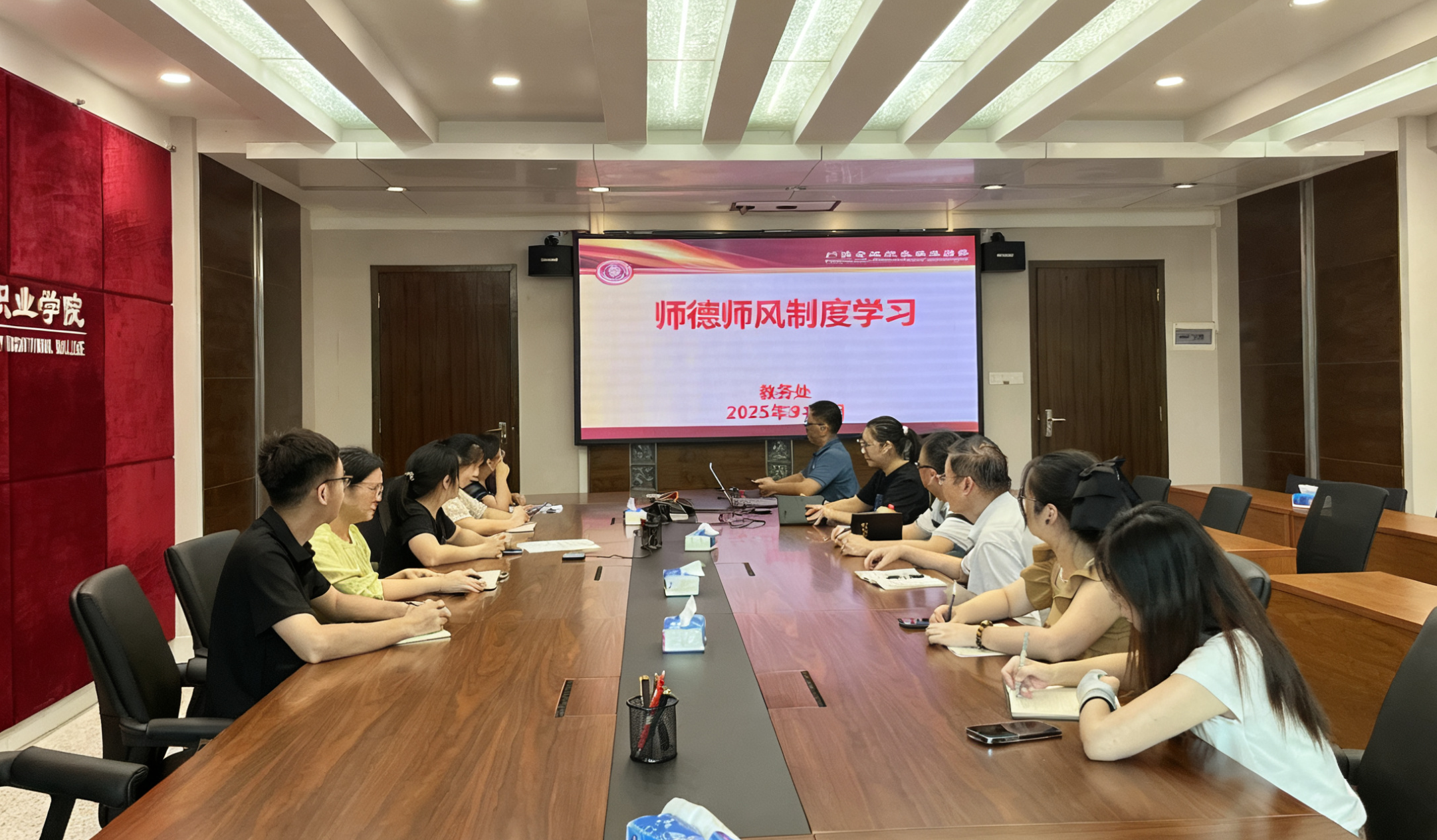 為進一步加強師德師風建設,引導教職工恪守職業(yè)規(guī)范、落實立德樹人根本任務。9月8日,教務處全體人員在行政樓305會議室,開展了師德師風專題學習會議,并集中簽署《廣州華立科技職業(yè)學院教師師德師風承諾書》。