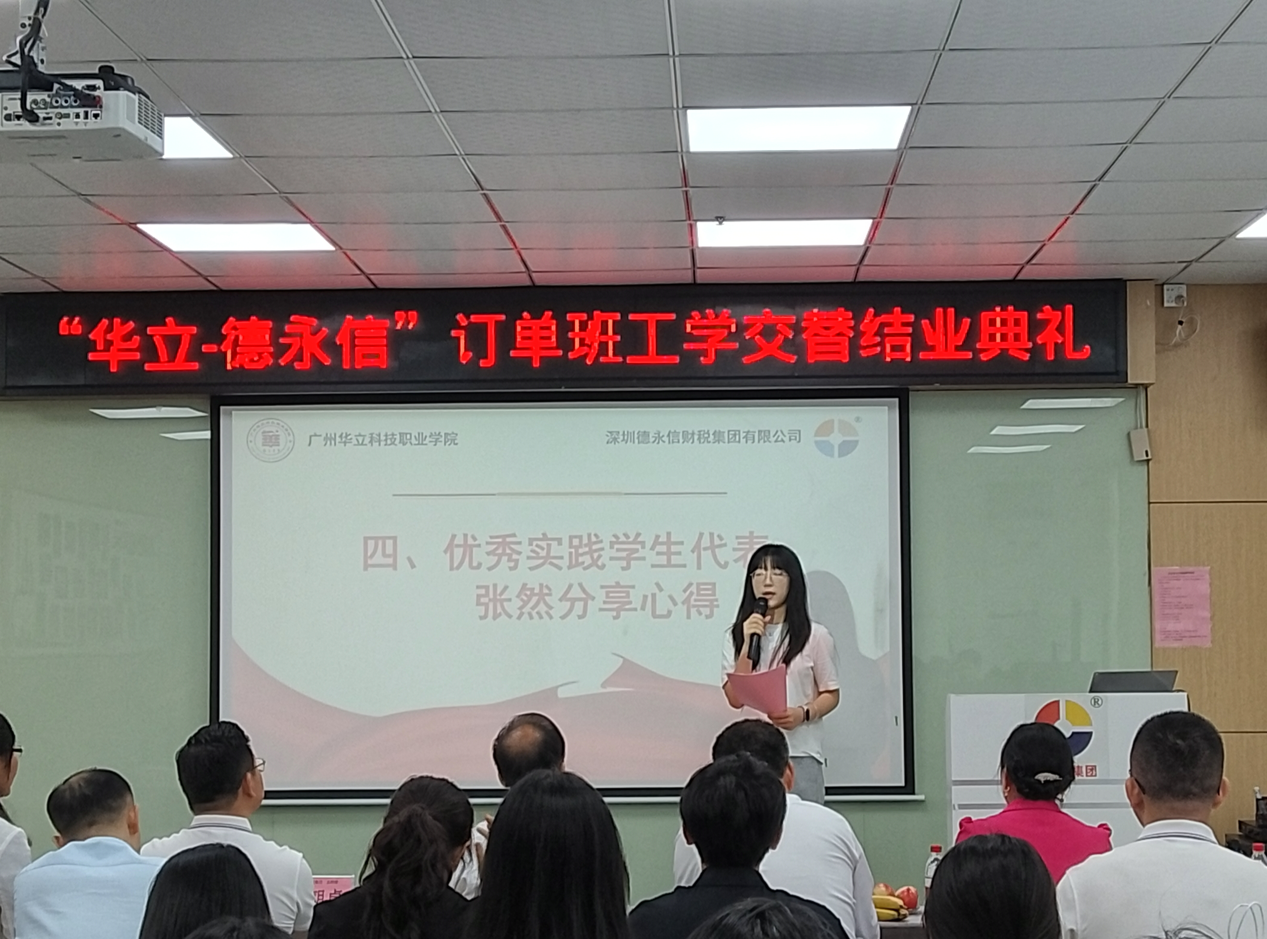 冼朝卓總經(jīng)理簡單回顧了廣州華立科技職業(yè)學(xué)院與深圳德永信財稅集團公司長達17年的合作歷程,并對此次工學(xué)交替班的學(xué)員在短期內(nèi),快速適應(yīng)崗位要求,在實踐知識、溝通協(xié)調(diào)、職業(yè)能力等方面的提升表示充分認可,對繼續(xù)深化合作、創(chuàng)新合作模式、擴展合作領(lǐng)域充滿期待。