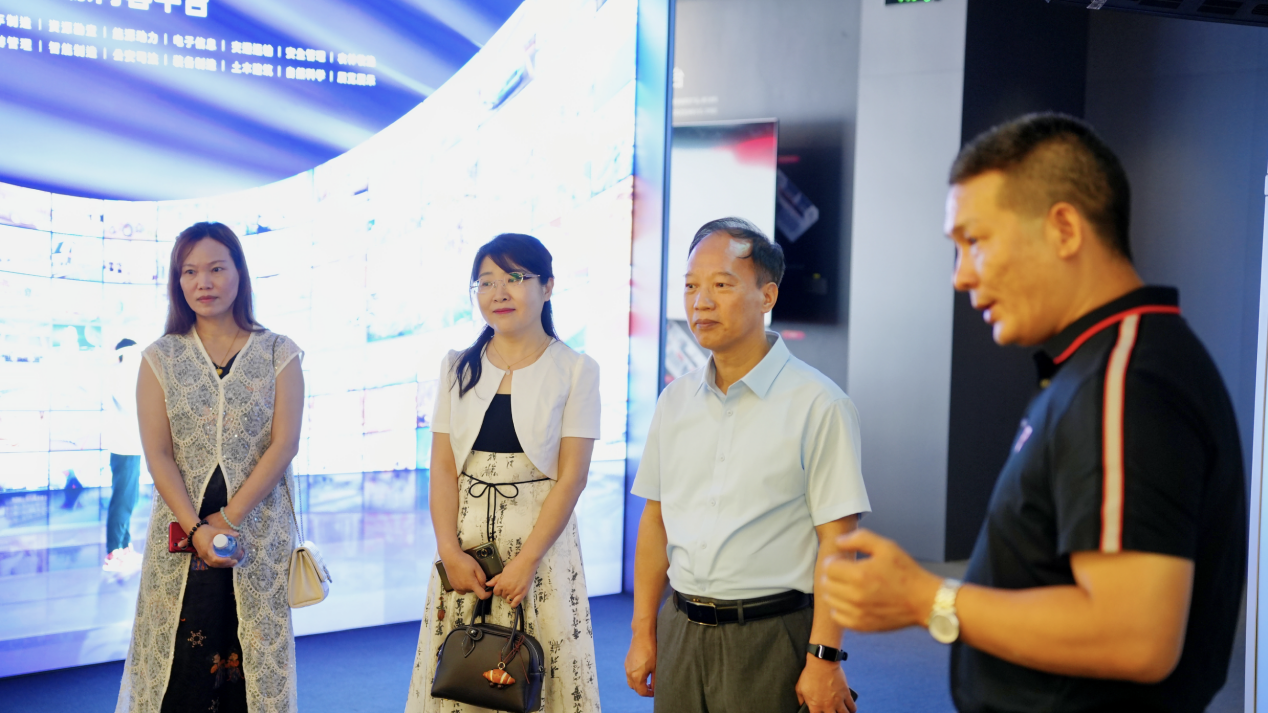 校企交流會前,在上海曼恒數(shù)字技術(shù)股份有限公司(華南總部)總經(jīng)理譚永冰的陪同下,陳良聲書記一行參觀了公司展廳及公司內(nèi)部環(huán)境,深入了解了企業(yè)的發(fā)展歷程、企業(yè)文化和業(yè)務布局。