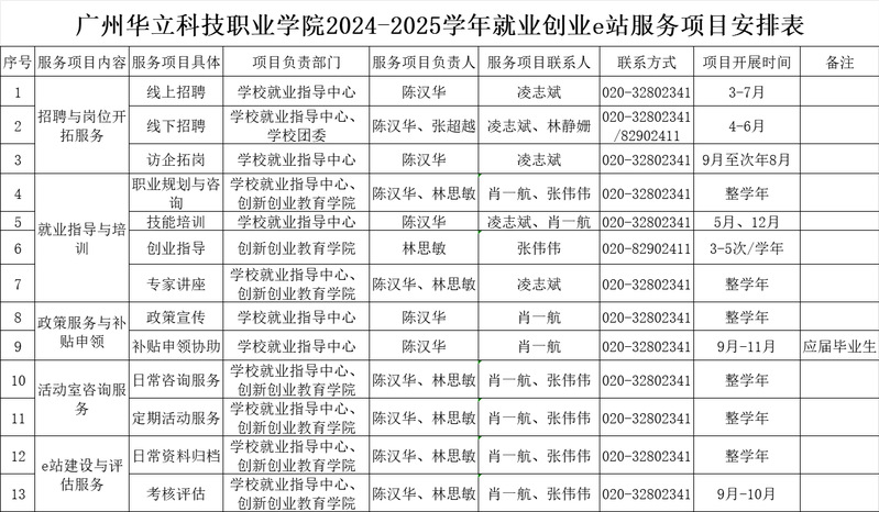 廣州華立科技職業(yè)學(xué)院2024-2025學(xué)年就業(yè)創(chuàng)業(yè)e站服務(wù)項(xiàng)目安排表