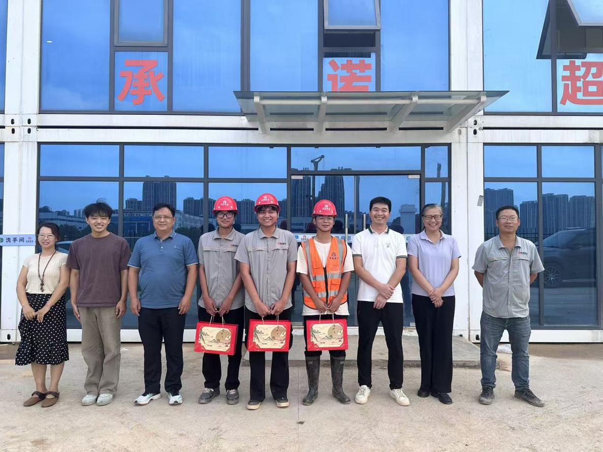 中秋佳節(jié)將至,為表達學校對實習學生的深切關懷與牽掛,深化產教融合、校企合作,根據學院統(tǒng)籌安排,2025年9月29日,廣州華立科技職業(yè)學院城建學院院長助理馬芳老師、教科研副主任喬亮老師、裝配式建筑工程技術專業(yè)負責人楊艷老師、建筑工程技術專業(yè)負責人鄭建勛老師一行趕赴廣東嶸通建設有限公司開展校企合作簽約儀式、巡回教學活動,并親切看望慰問在崗實習的學生,為他們送上中秋禮品與節(jié)日祝福。